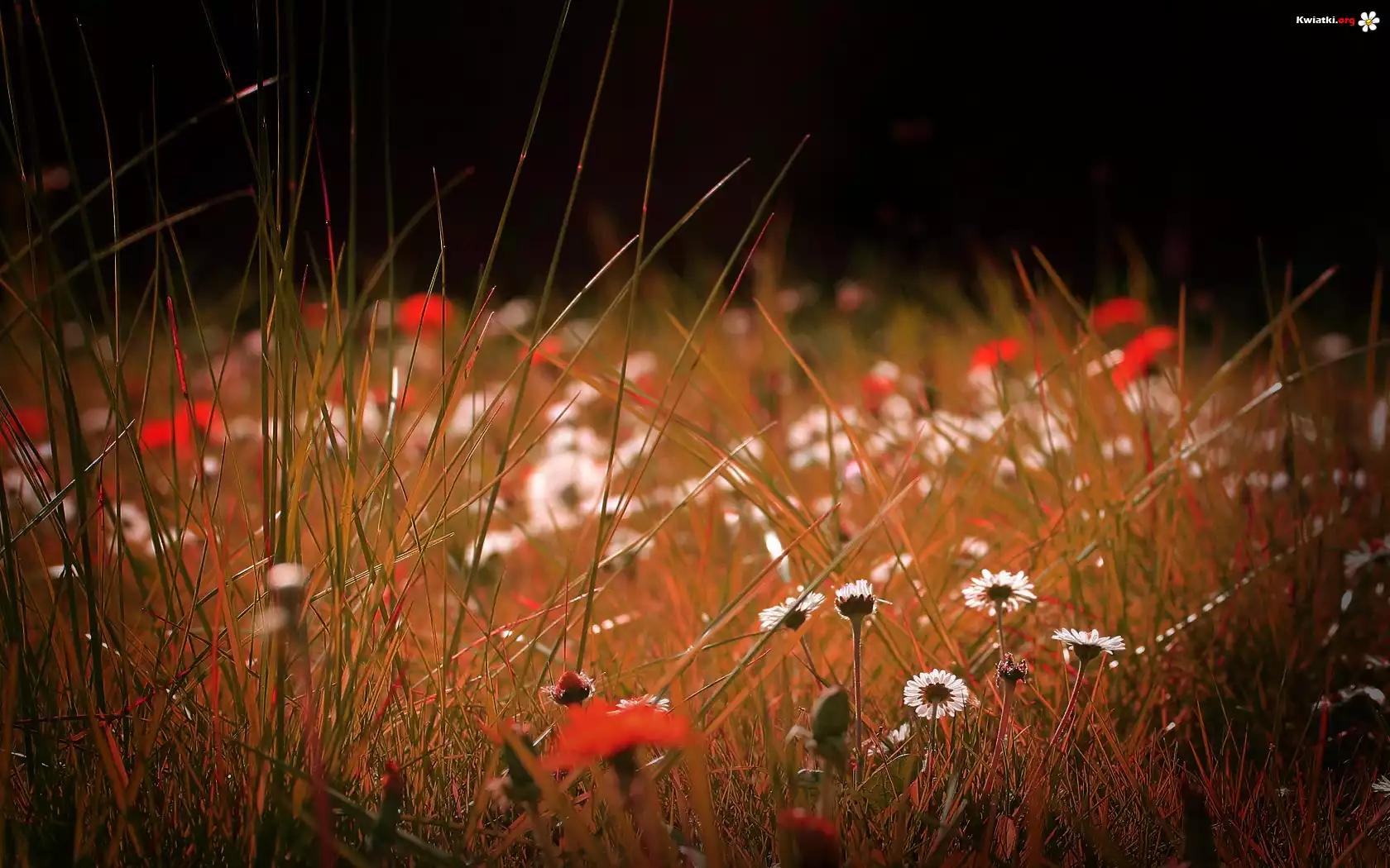 Łąka, Kwiaty, Stokrotki, Źdźbła, Trawy - Zdjęcia