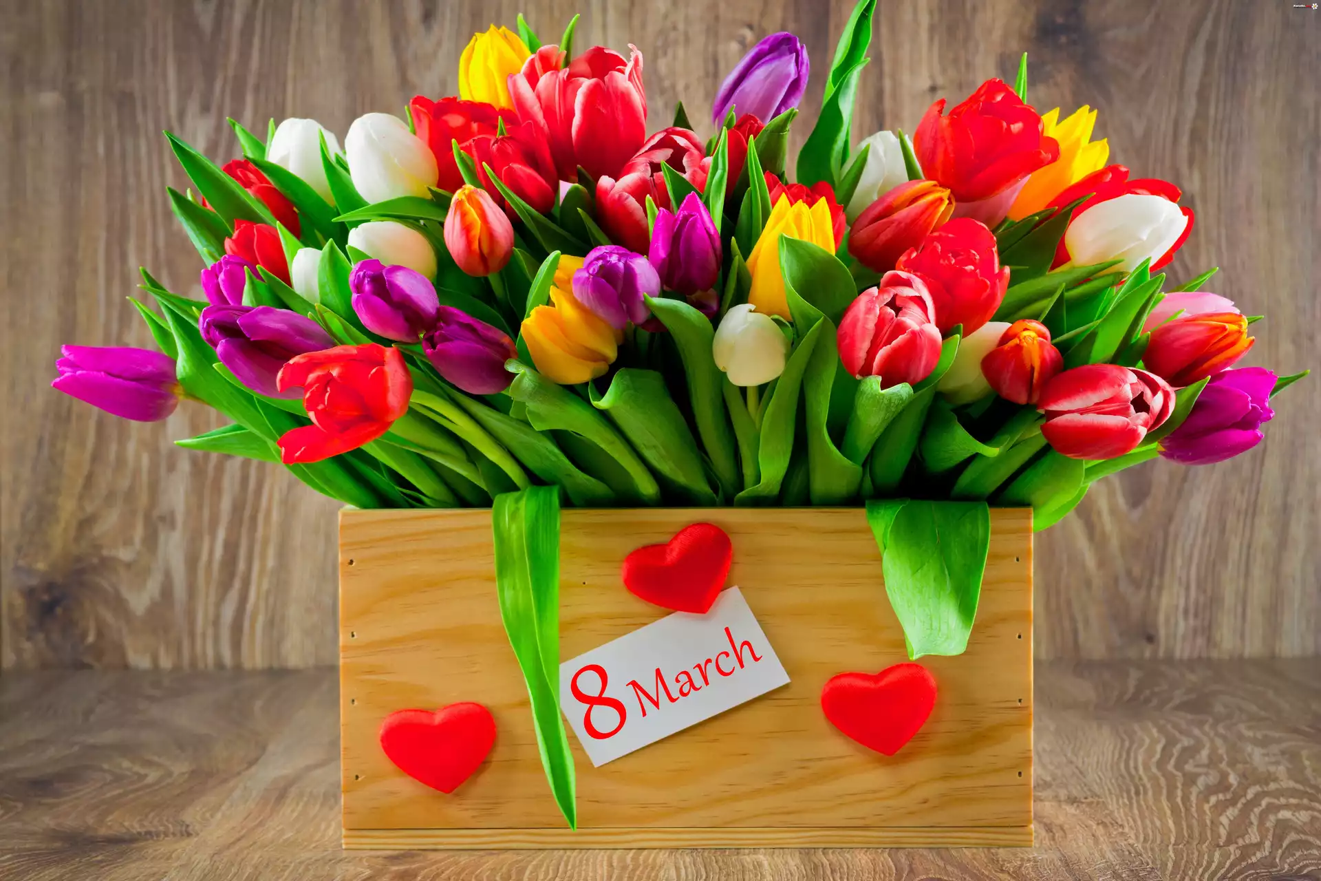 Dzień Kobiet, Kolorowe, Tulipany, Pudełko - Zdjęcia