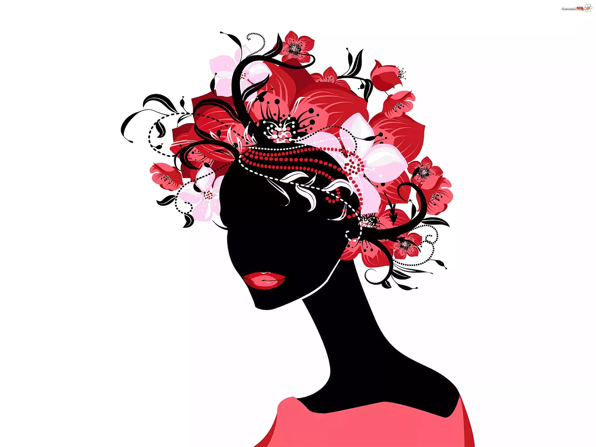 Grafika, Dziewczyna, Kwiaty - Zdjęcia
