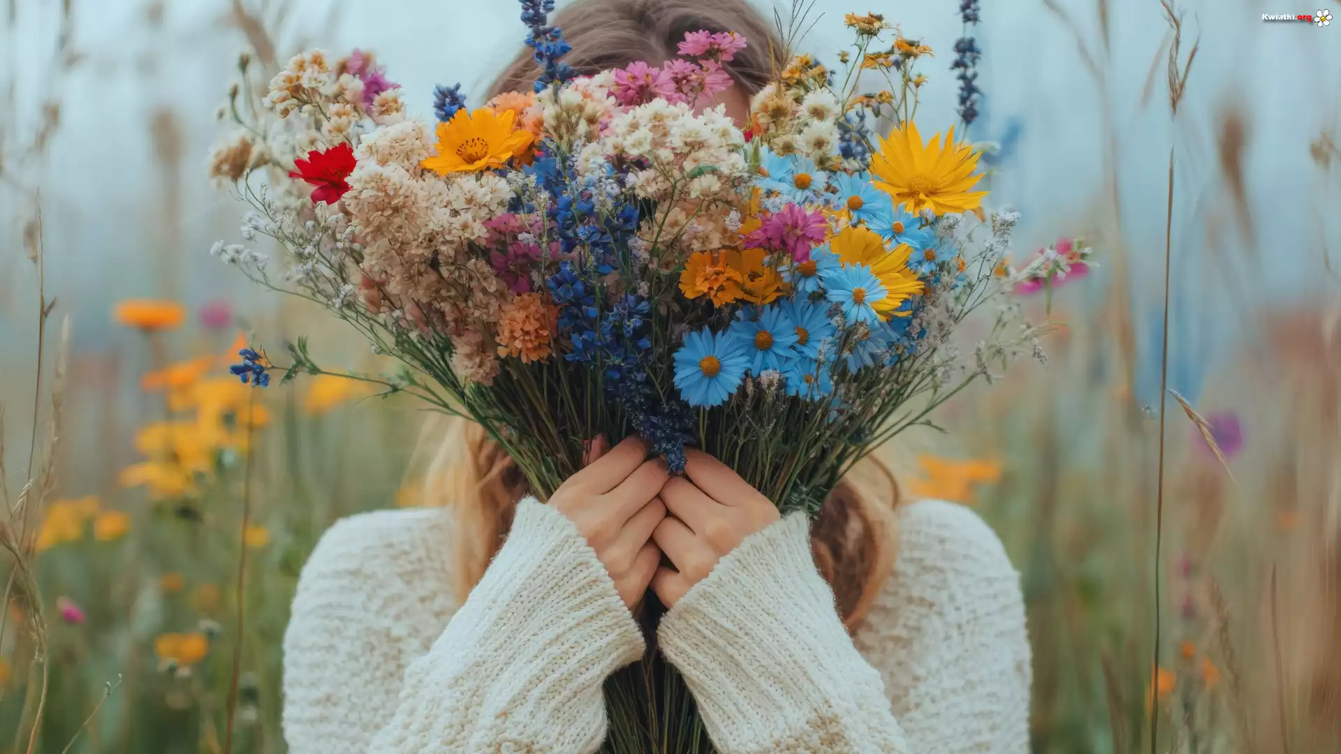 Dziewczyna, Bukiet, Kwiaty - Zdjęcia
