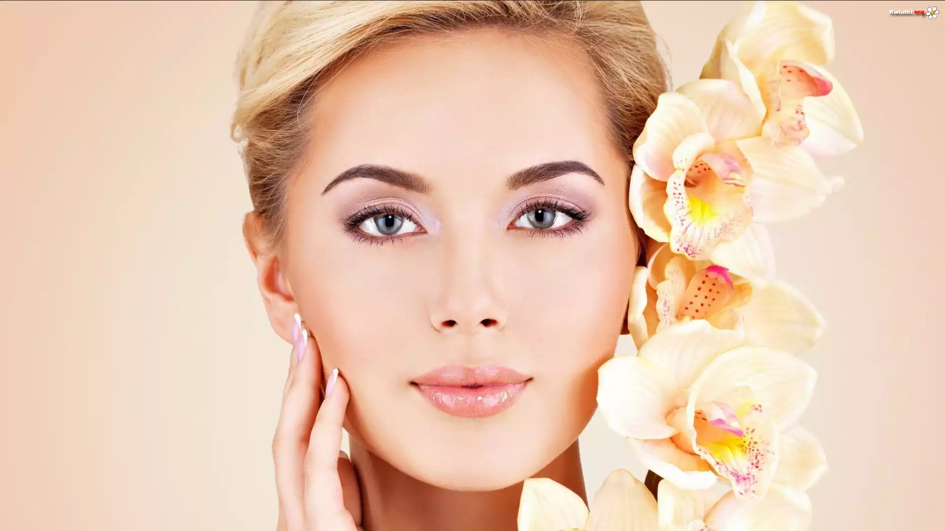 Dziewczyna, Twarz, Kwiaty, Storczyki - Zdjęcia