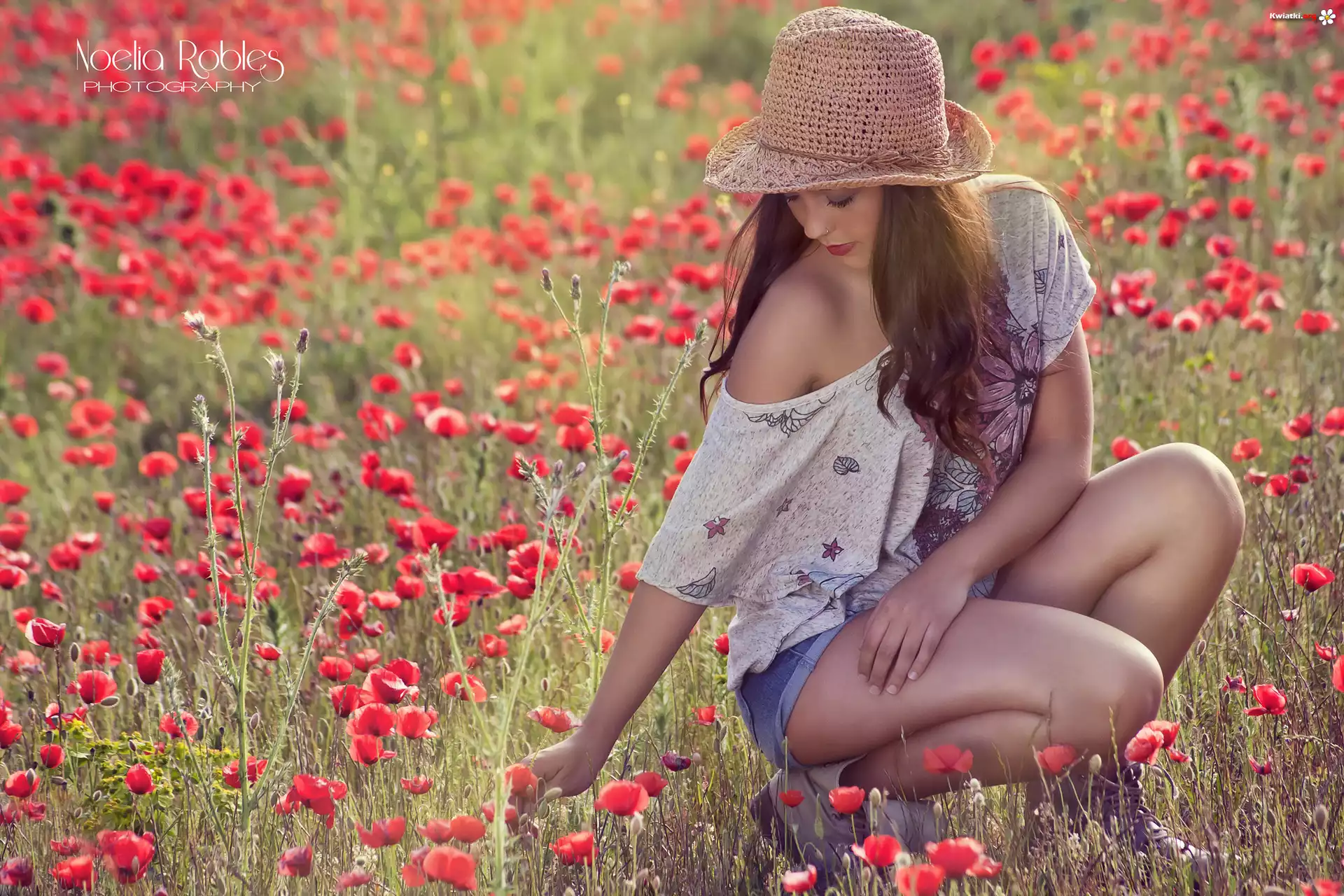 Kwiat Łąka, Maki, Dziewczyna, Kapelusz