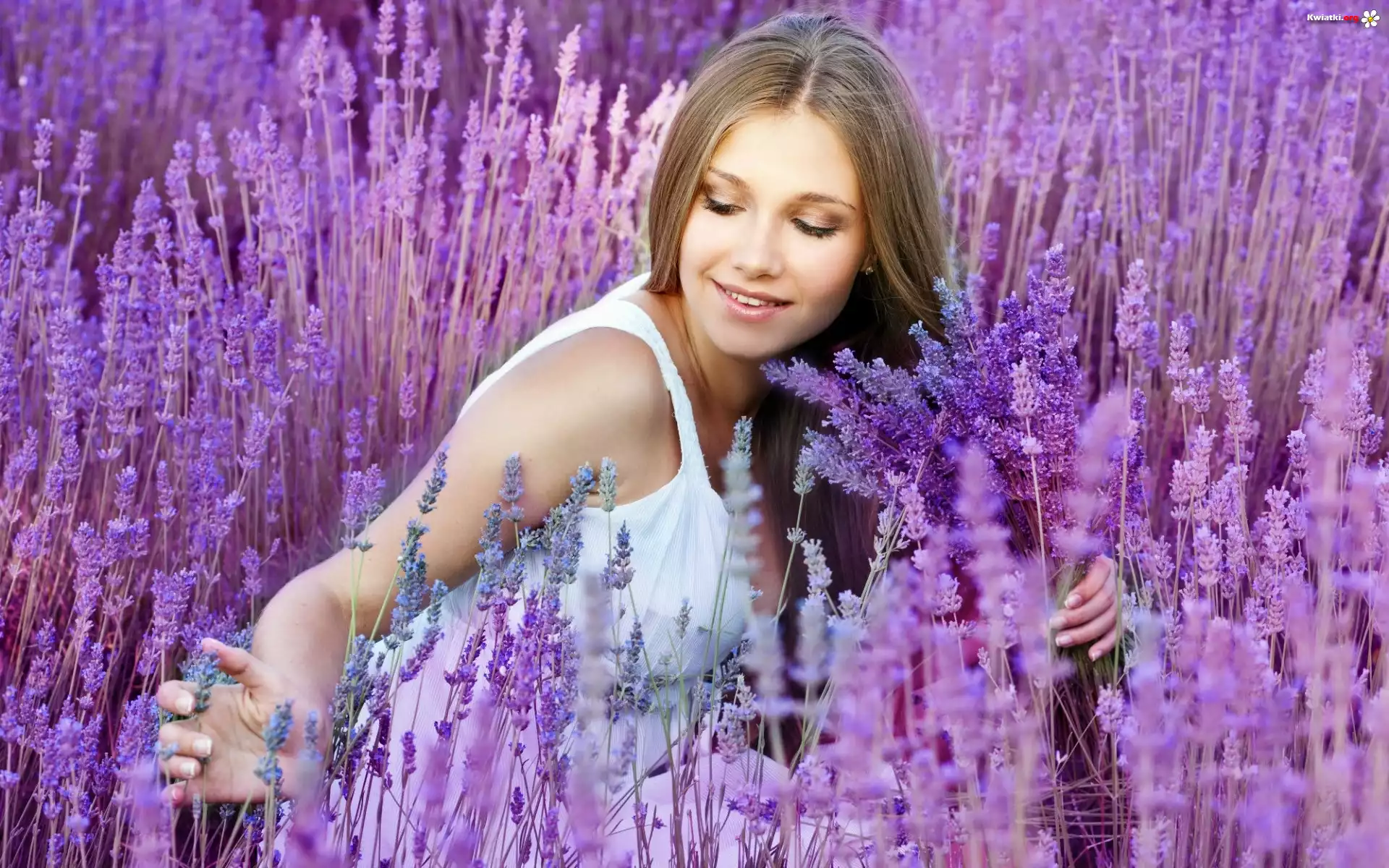 Dziewczyna, Bukiecik, Pole, Lawendowe - Zdjęcia