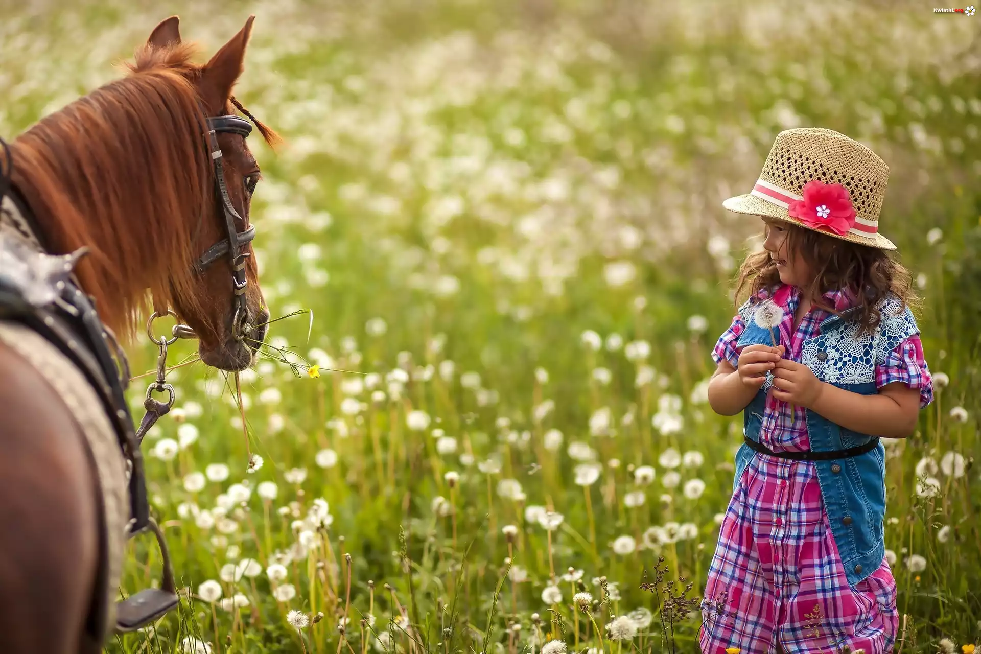 Kwiat Dziewczynka, Koń, Łąka, Kwiaty
