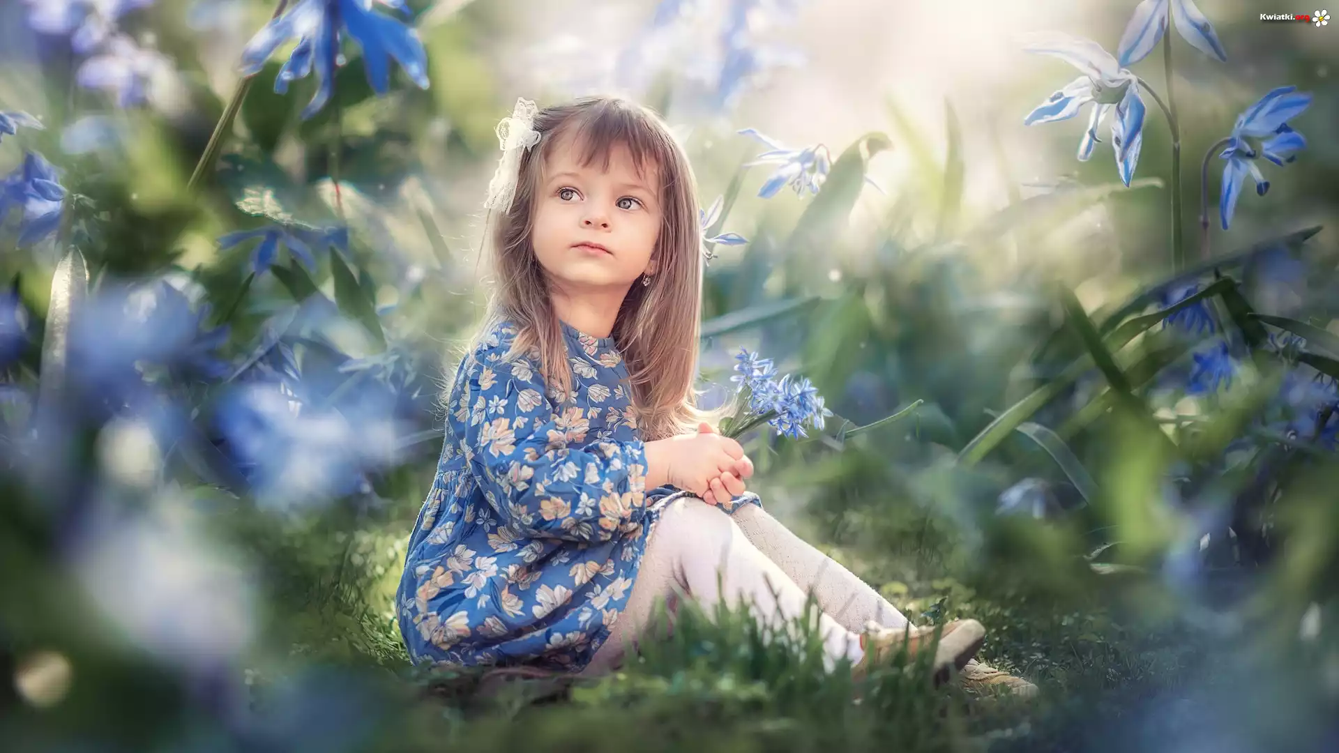 Dziewczynka, Kwiaty, Cebulica syberyjska - Zdjęcia