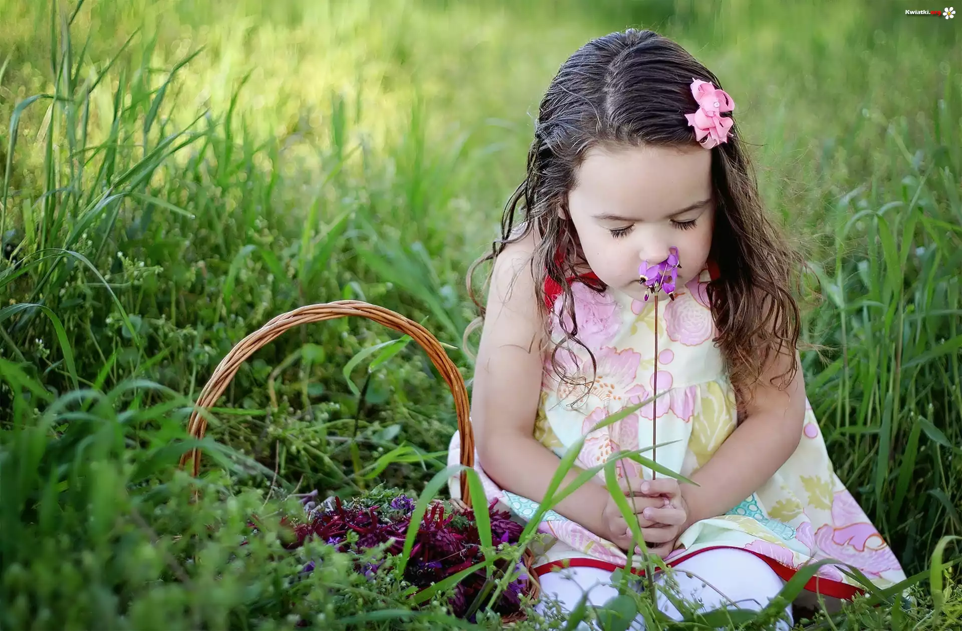 Kwiat Dziewczynka, Łąka, Kwiatki, Koszyk