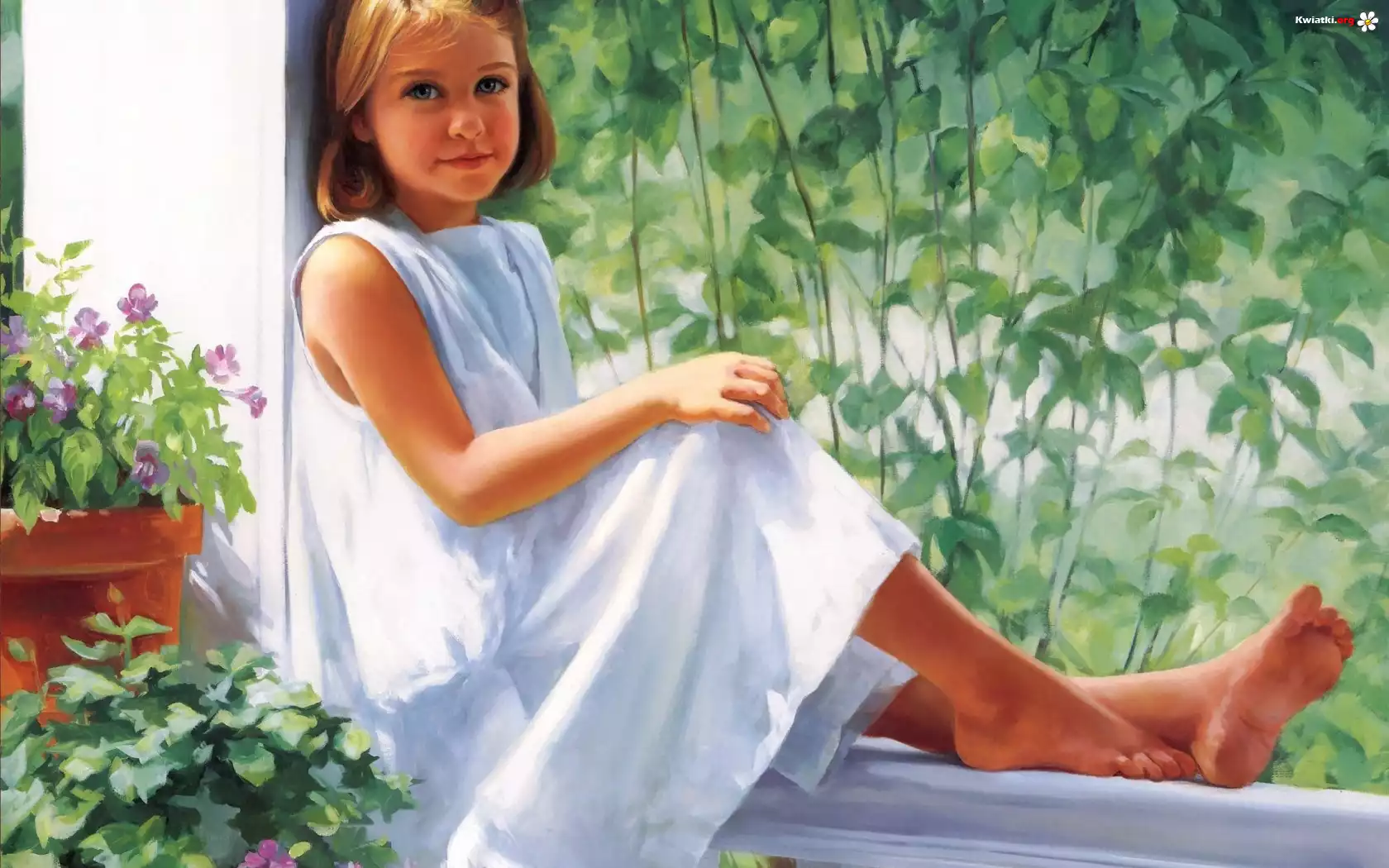 Dziewczynka, Weranda, Kwiatki, Rośliny - Zdjęcia