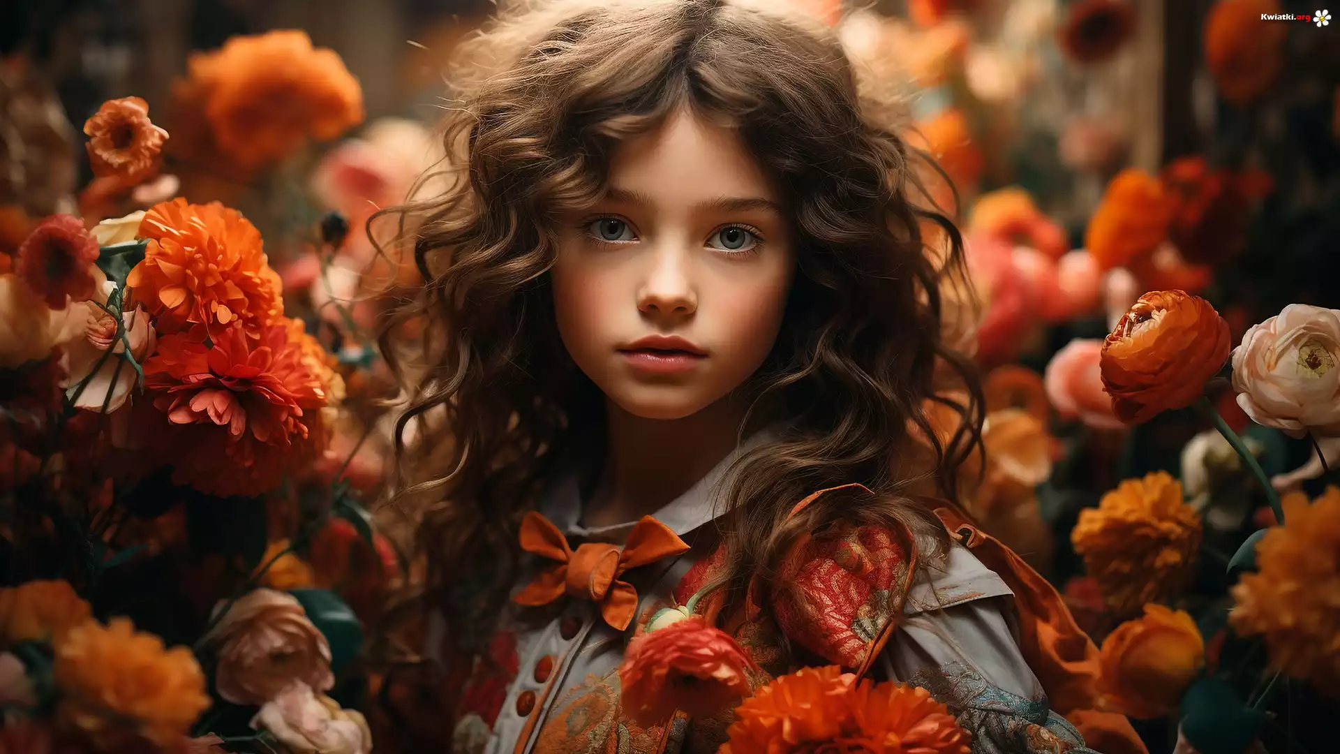 Dziewczynka, Pomarańczowe, Kwiaty - Zdjęcia