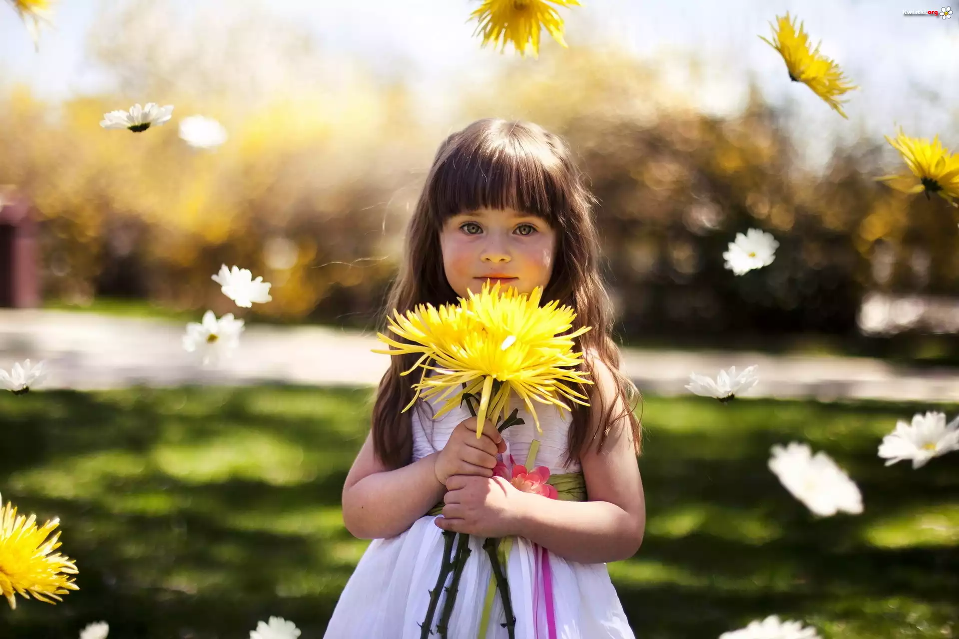 Mała, Dziewczynka, Kwiaty - Zdjęcia