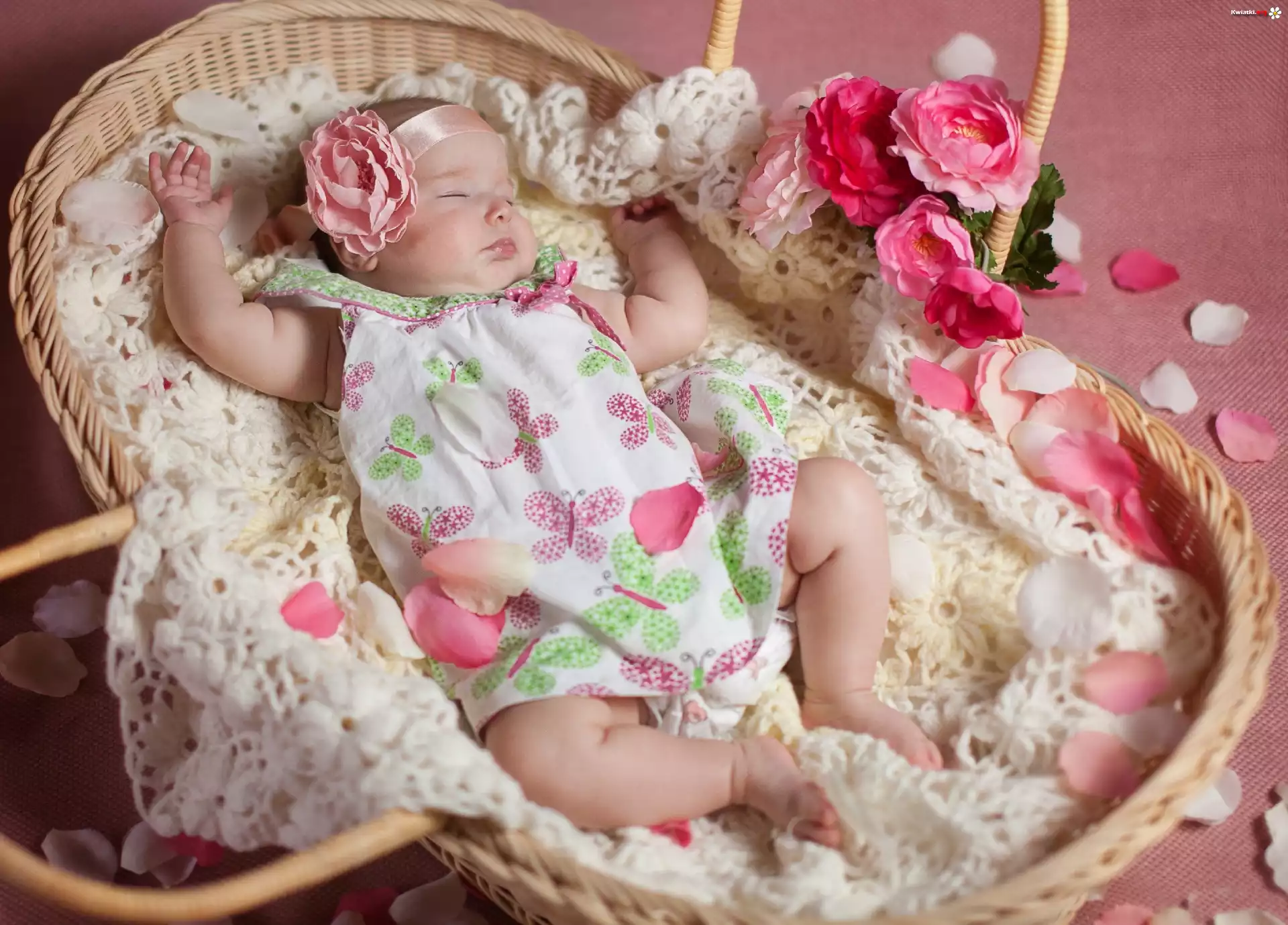Śpiąca, Mała, Dziewczynka, Kwiaty - Zdjęcia