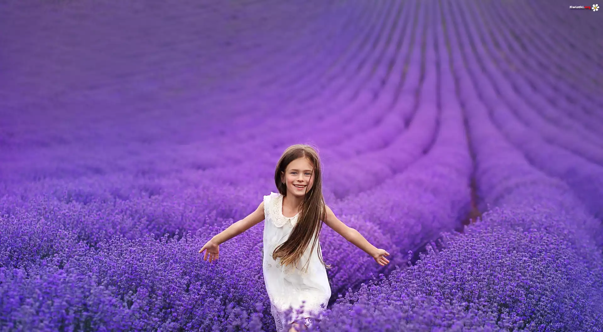 Dziewczynka, Biała, Sukienka, Pole, Lawenda - Zdjęcia