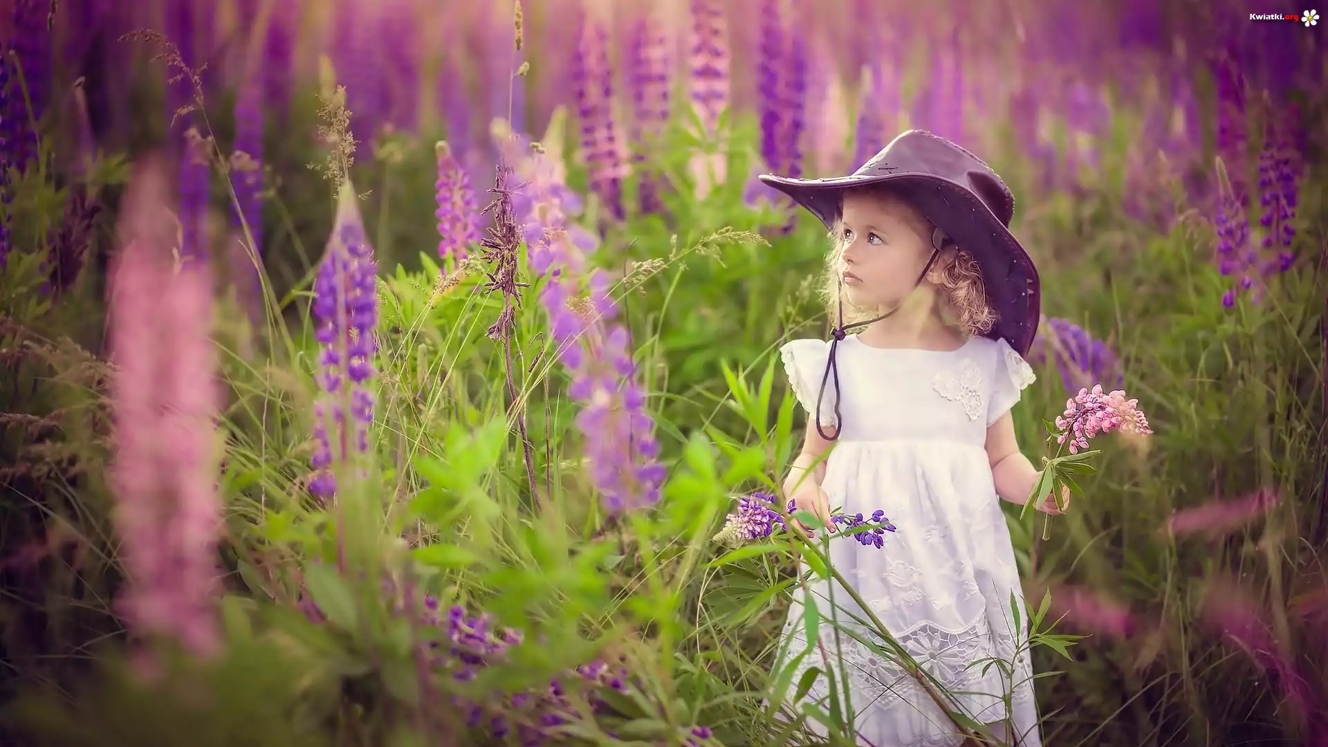 Dziewczynka, Kapelusz, Łubin, Łąka - Zdjęcia