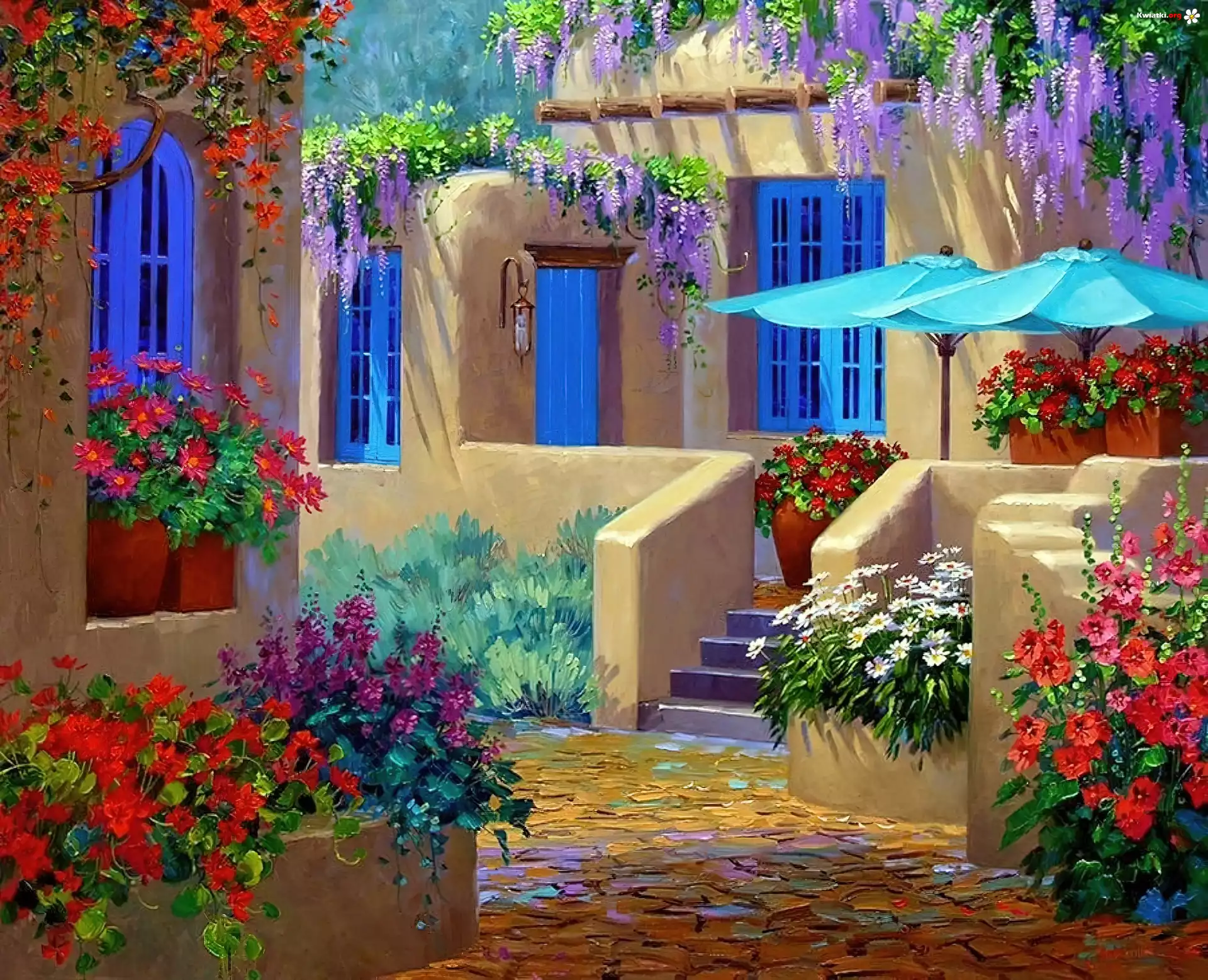 Fasady, Budynków, Kolorowe, Kwiaty - Zdjęcia