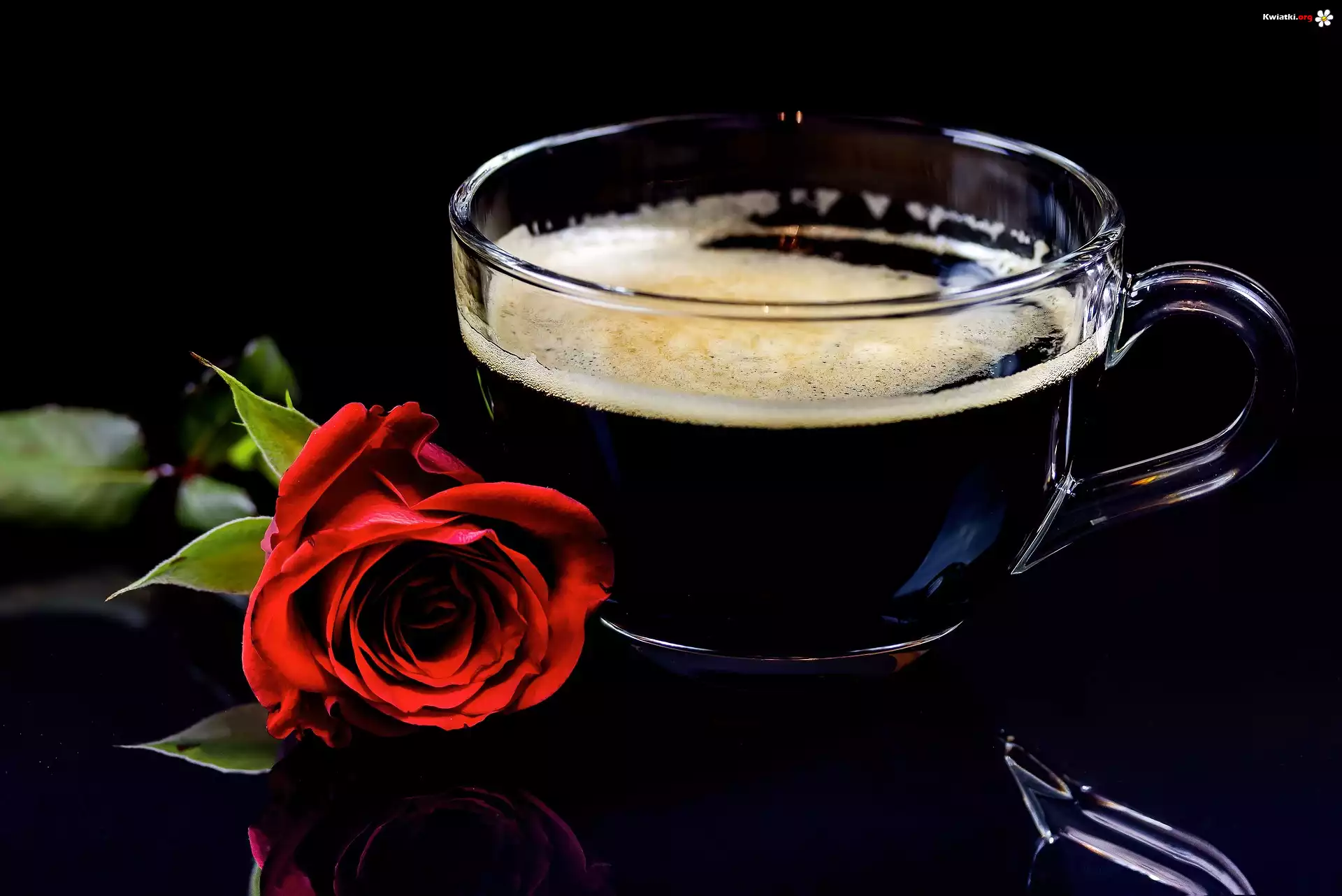 Szklana, Filiżanka, Kawa, Czerwona, Róża - Zdjęcia