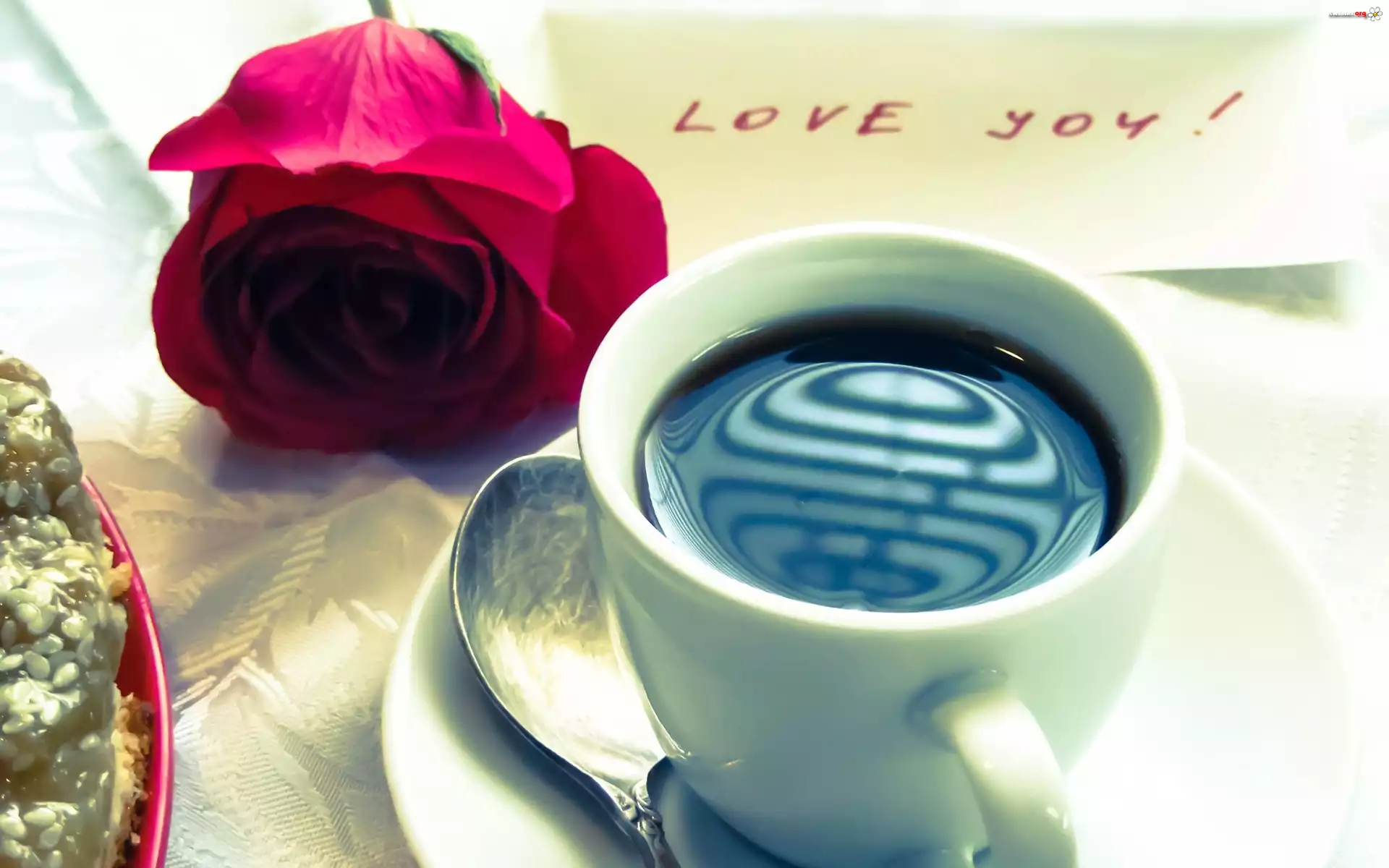 Kwiat Filiżanka, Kawy, Czerwona, Róża, Kompozycja, Walentynki