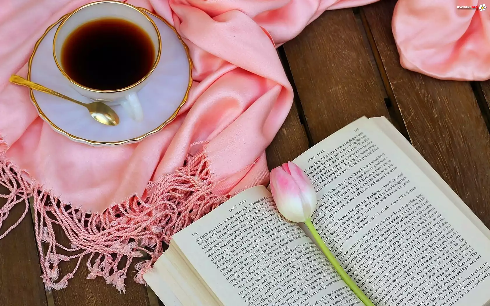 Filiżanka, Herbaty, Książka, Tulipan - Zdjęcia