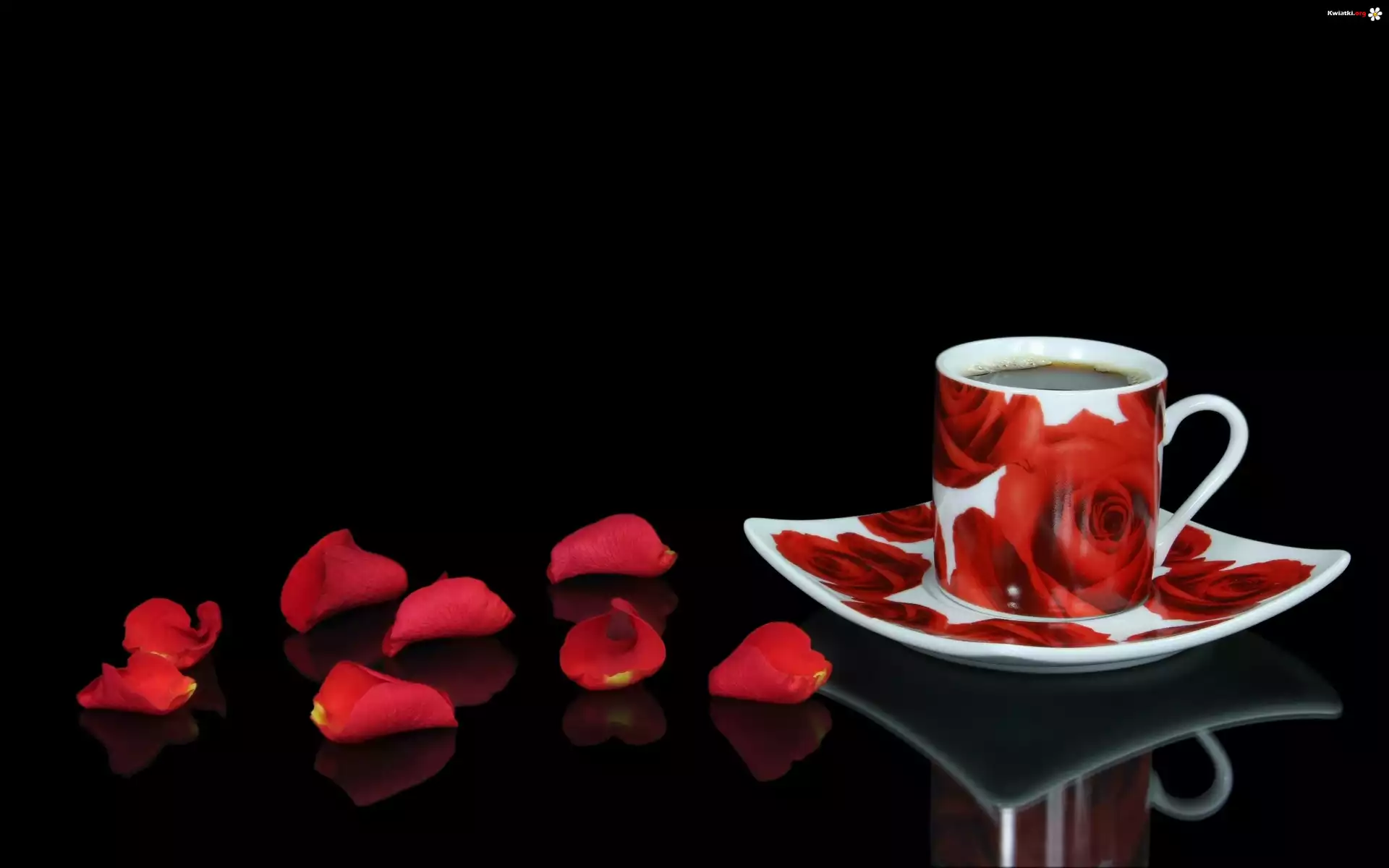 Filiżanka, Kawy, Róże, Płatki - Zdjęcia