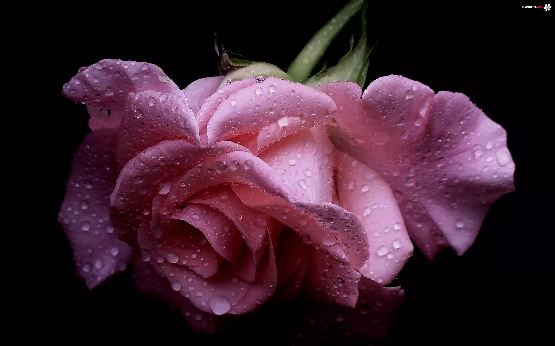 Kwiat Fioletowa, Róża, Krople, Deszczu