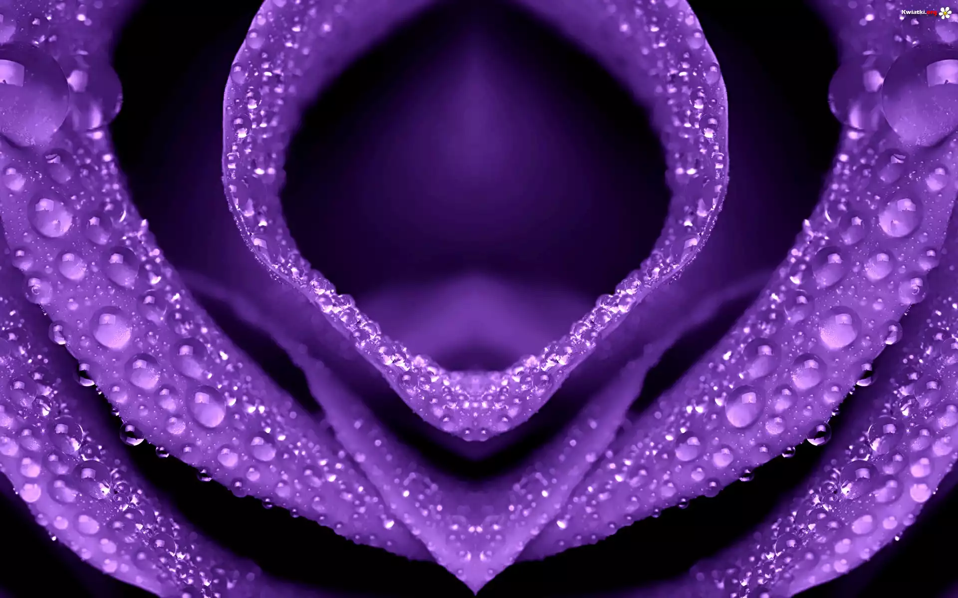 Fioletowa, Róża, Krople, Wody - Zdjęcia