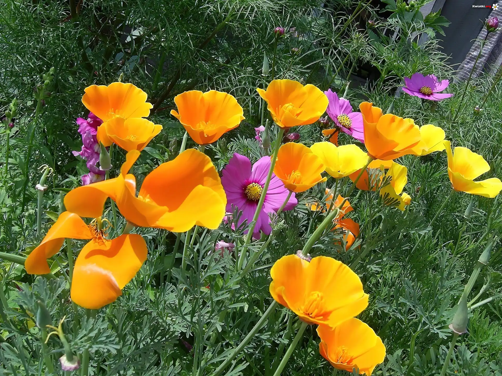 Kwiat Fioletowa, Kosmea, Żółte, Kwiaty