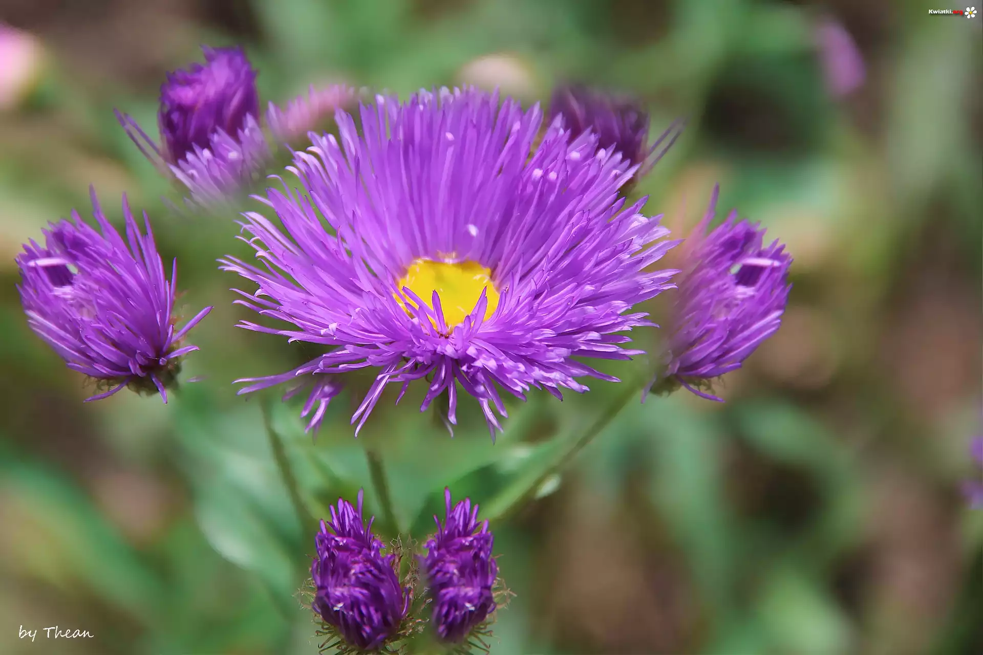 Fioletowy, Aster, Kwiat, Zbliżenie Fioletowe, Astry Kwiaty, Liście Astry, Czereśnie, Butelka, Wino Kwiat, Astra alpejskiego Aster alpejski Aster, Różowy, Ogród Astry alpejskie Niebieski, Aster Astry, Fioletowe Kolorowe, Astry, Biała, Porcelana Biały, Aster Fioletowe, Astry Szklany, Dzban, Astry