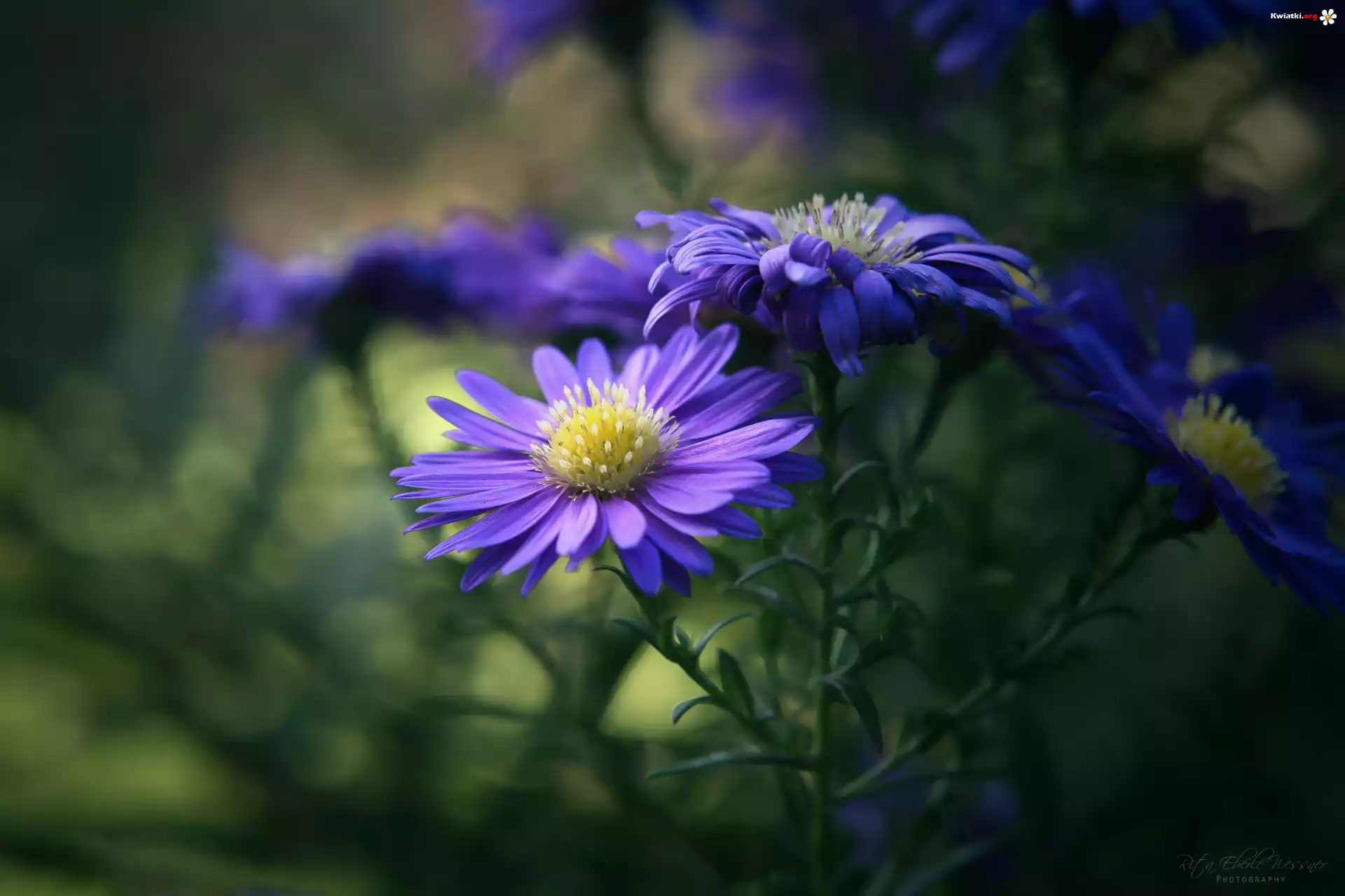 Fioletowe, Kwiaty, Astry nowobelgijskie - Zdjęcia