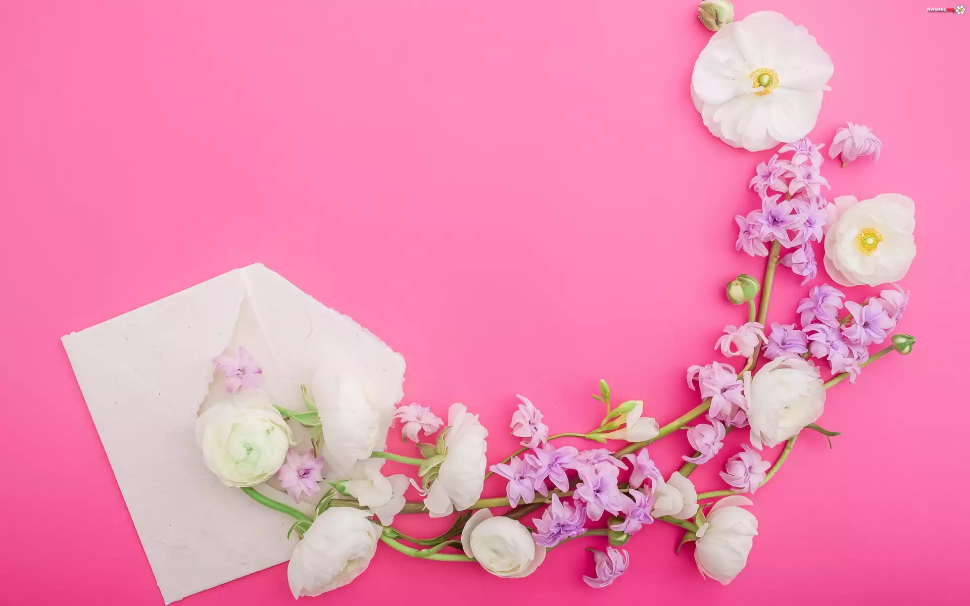 Białe, Fioletowe, Kwiaty, Biała, Koperta, Tło, Różowe - Zdjęcia