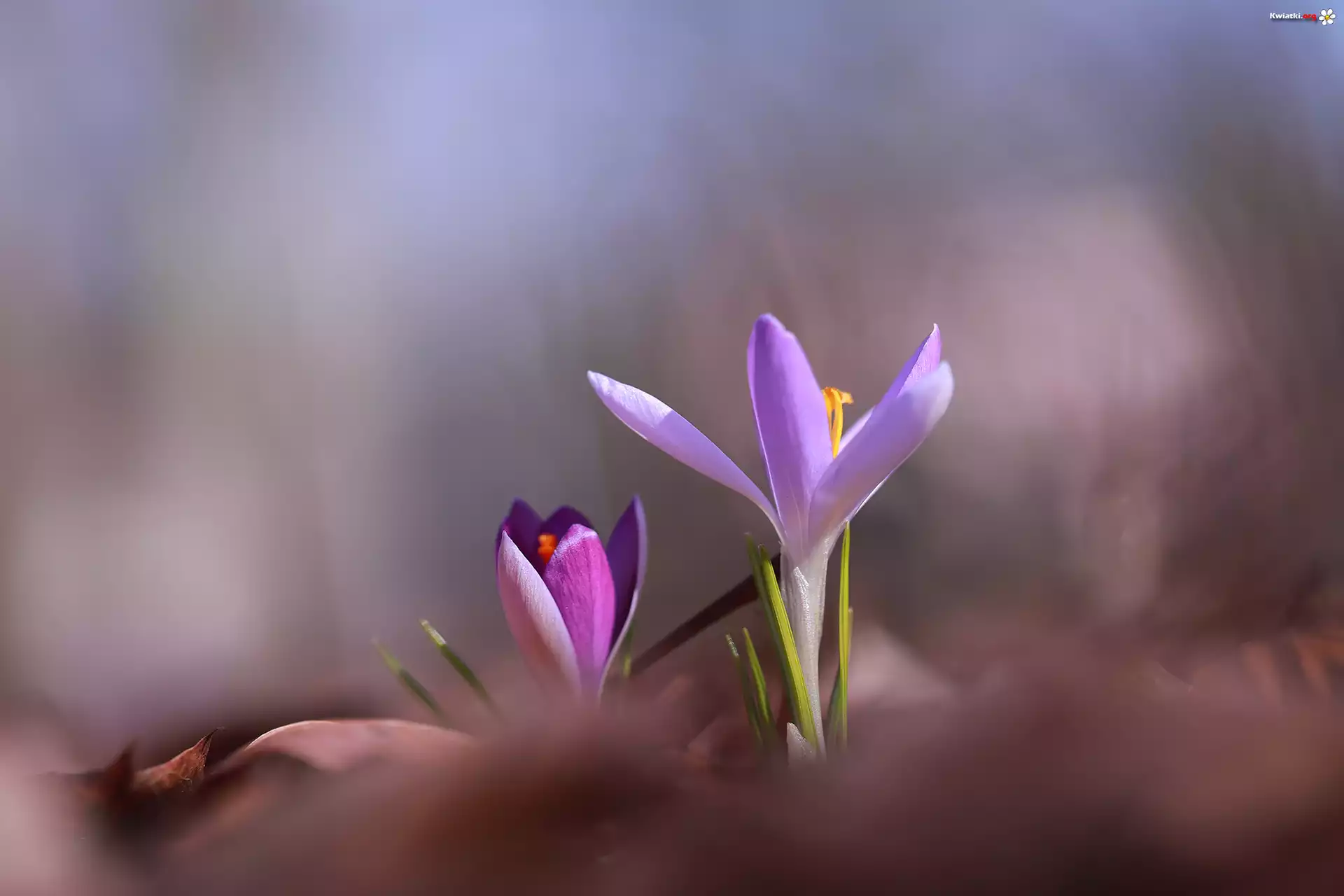 Fioletowe, Krokusy, Dwa, Kwiaty - Zdjęcia