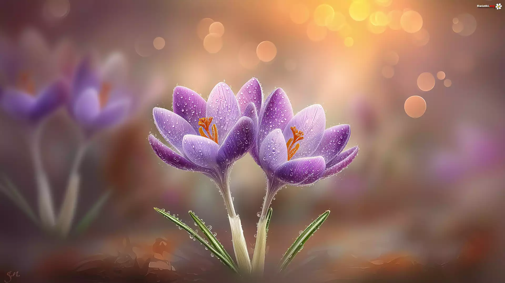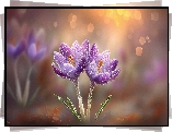 Dwa, Fioletowe, Krokusy, Grafika AI - Zdjęcia