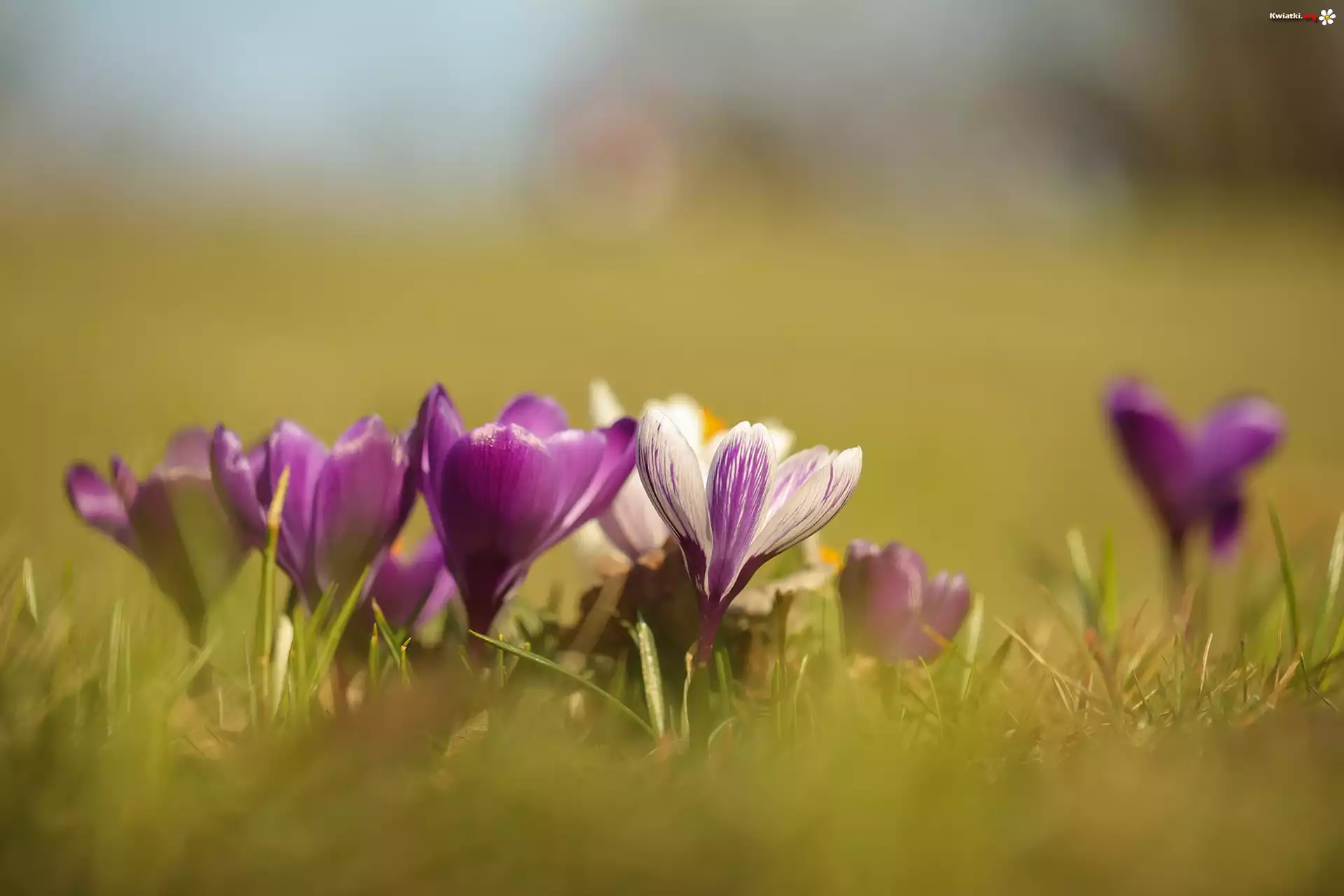 Fioletowe, Biało-fioletowe, Krokusy, Kwiaty - Zdjęcia