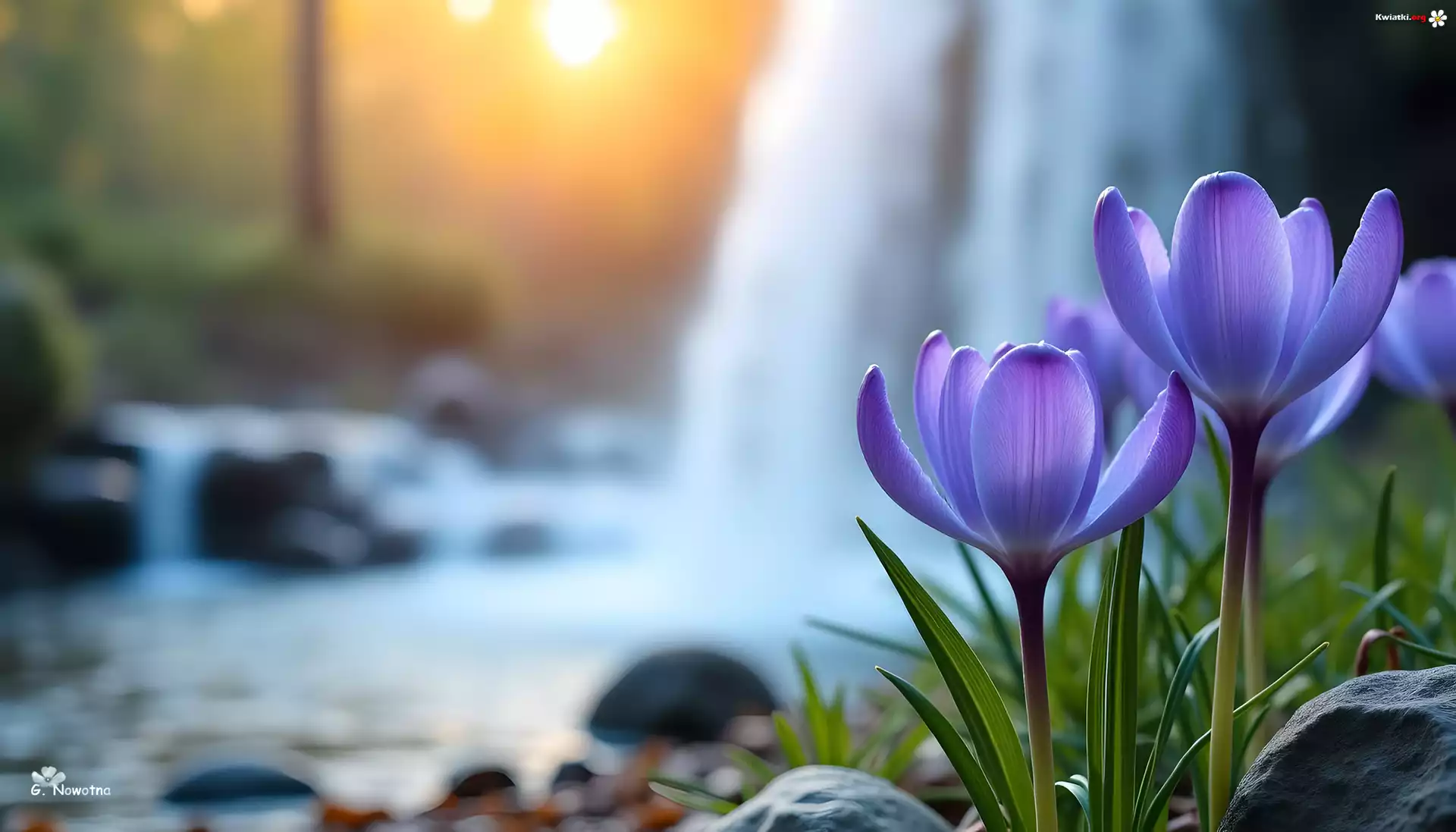 Rozkwitające, Fioletowe, Krokusy, Kwiaty, Grafika - Zdjęcia