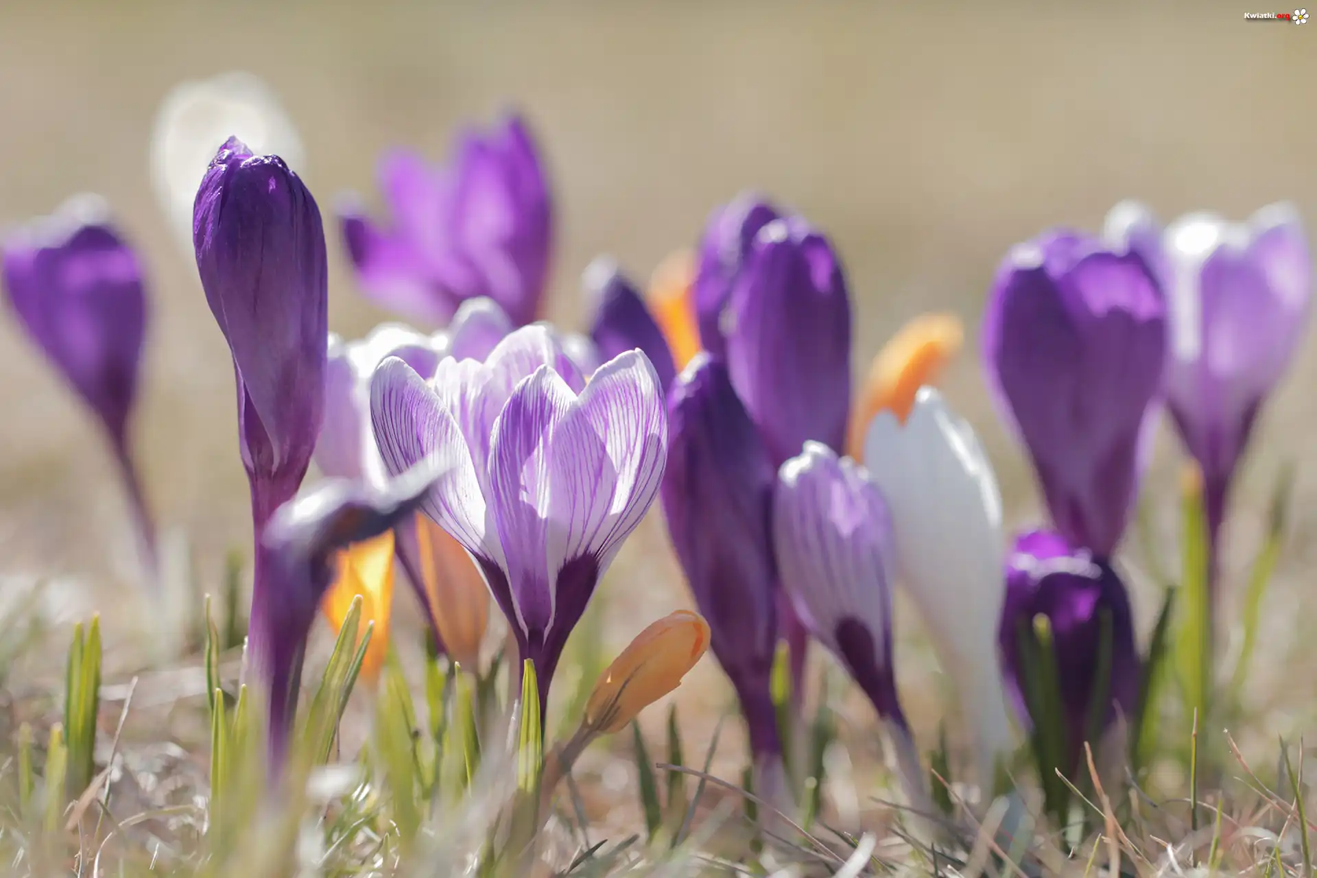Fioletowe, Żółte, Krokusy, Pąki - Zdjęcia