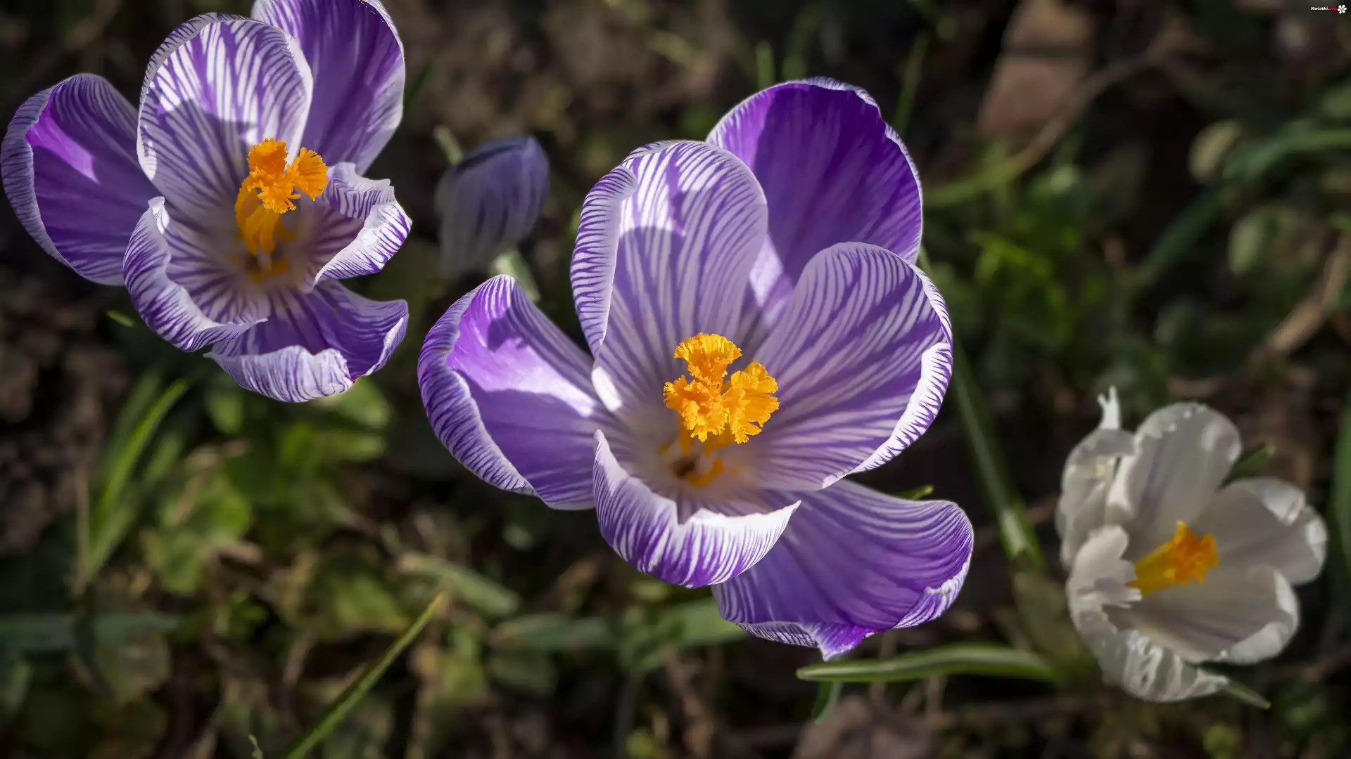 Kwiat Krokusy, Kwiat, Płatki, Fioletowe