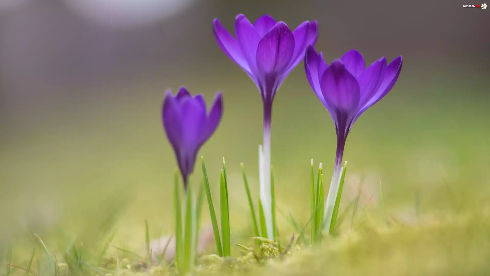 Fioletowe, Trzy, Krokusy, Rozmycie - Zdjęcia