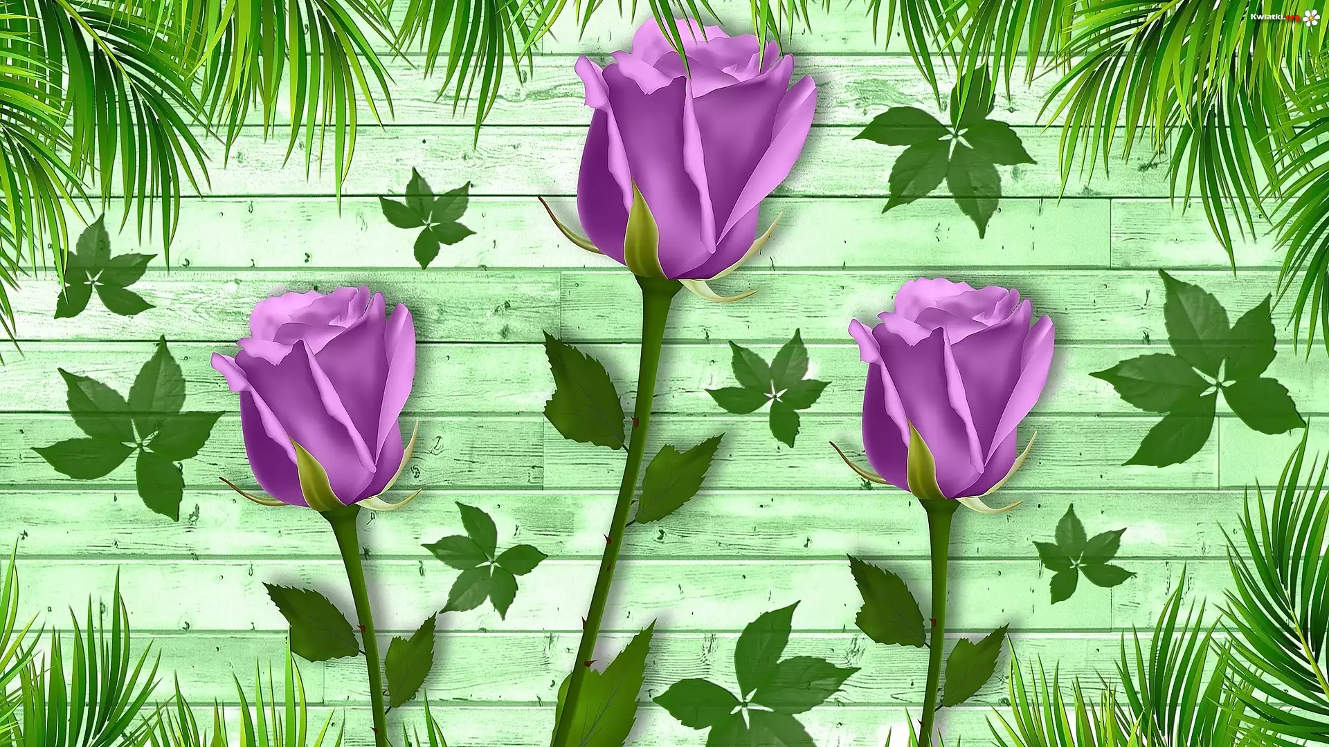 Kwiat, Fioletowe, Róże, Liście, Trawa, Deski, Grafika - Zdjęcia