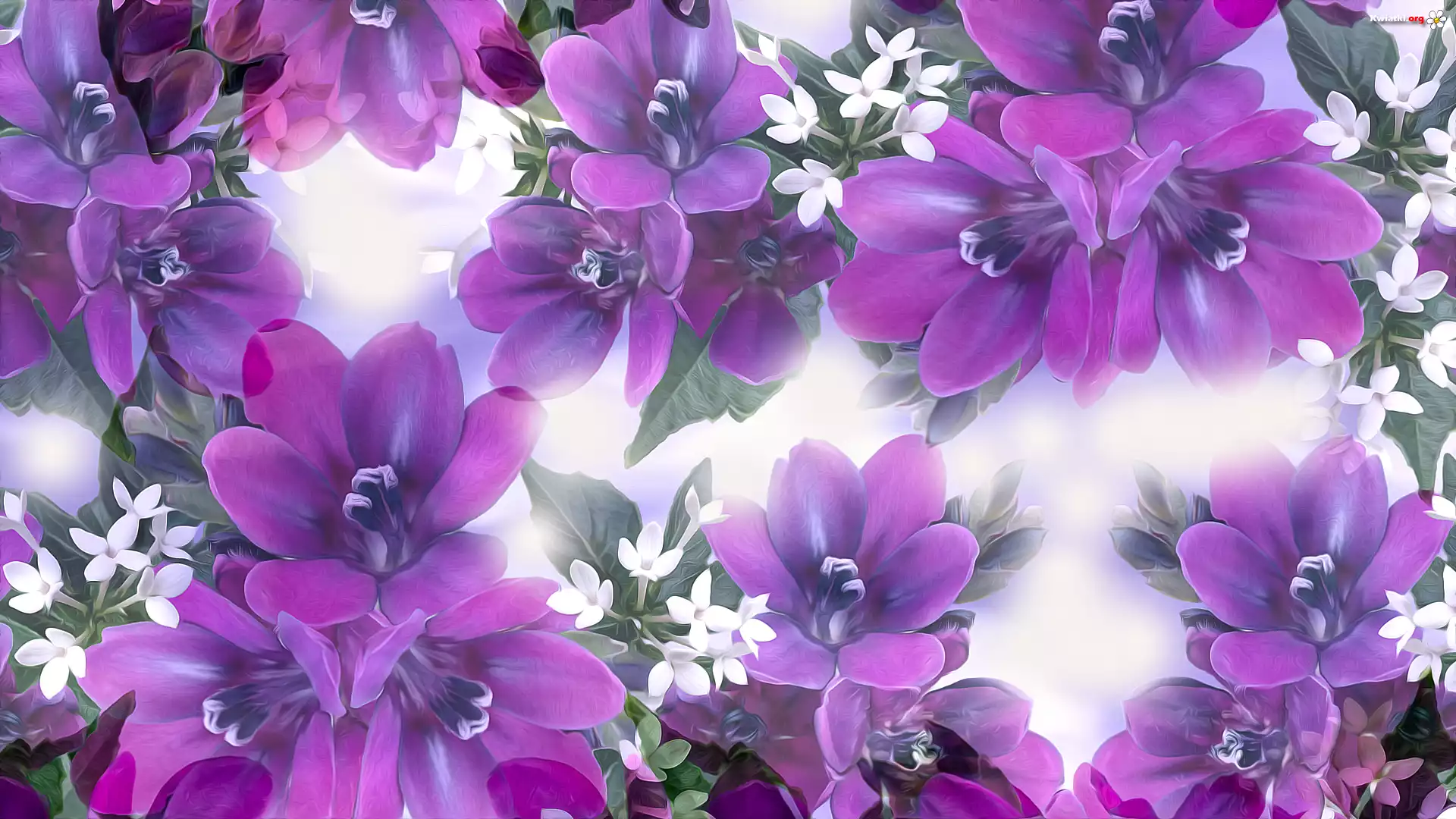 Fioletowe, Przymglone, Kwiaty, Grafika - Zdjęcia