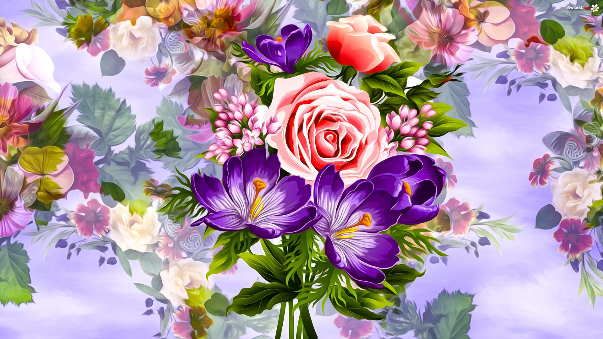 Fioletowe, Różowe, Kwiaty, Grafika - Zdjęcia