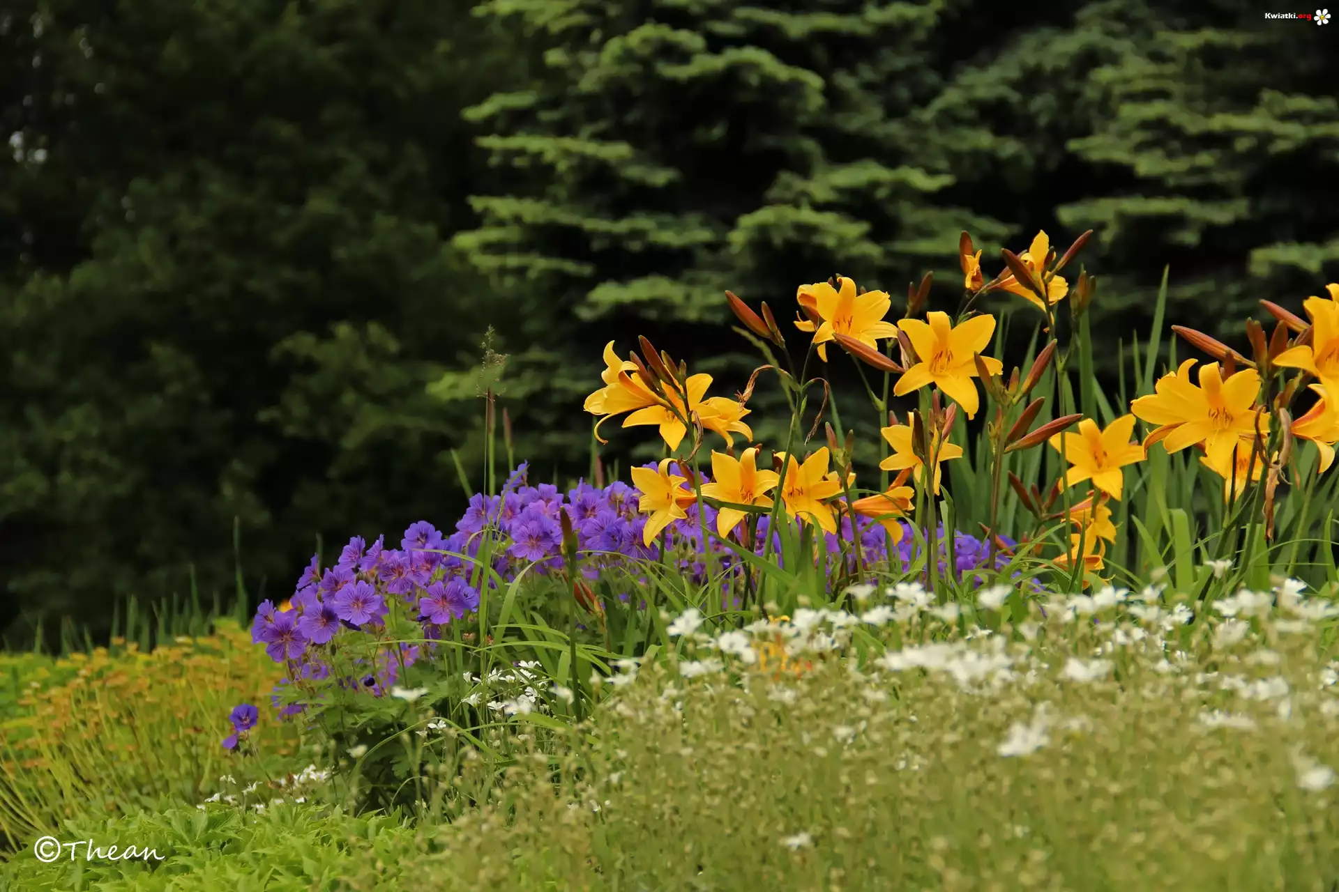 Kwiat Żółte, Lilie, Fioletowe, Kwiaty