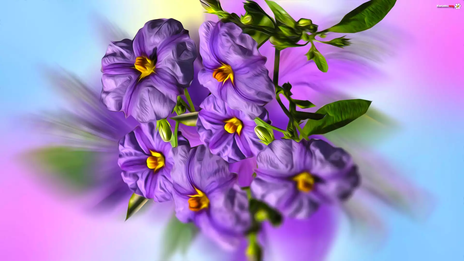 Fioletowe, Kwiaty, Listki, Grafika - Zdjęcia