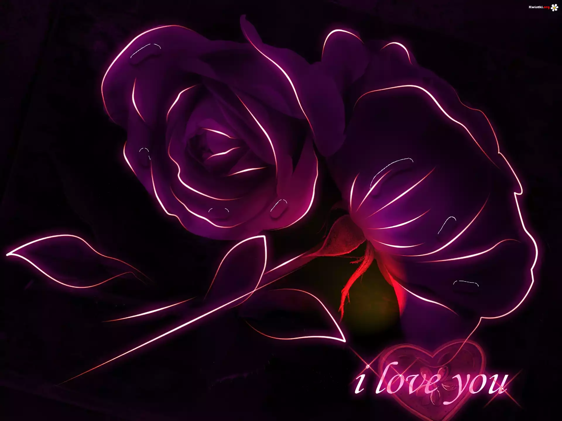 Kwiat Fioletowe, Róże, Miłość, Grafika