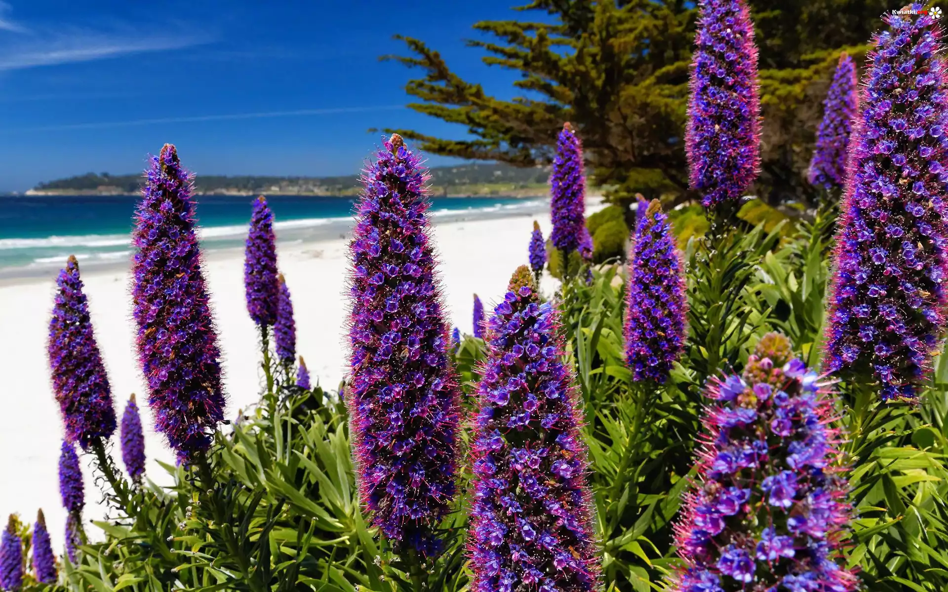 Fioletowe, Kwiaty, Budleja, Morze, Plaża - Zdjęcia