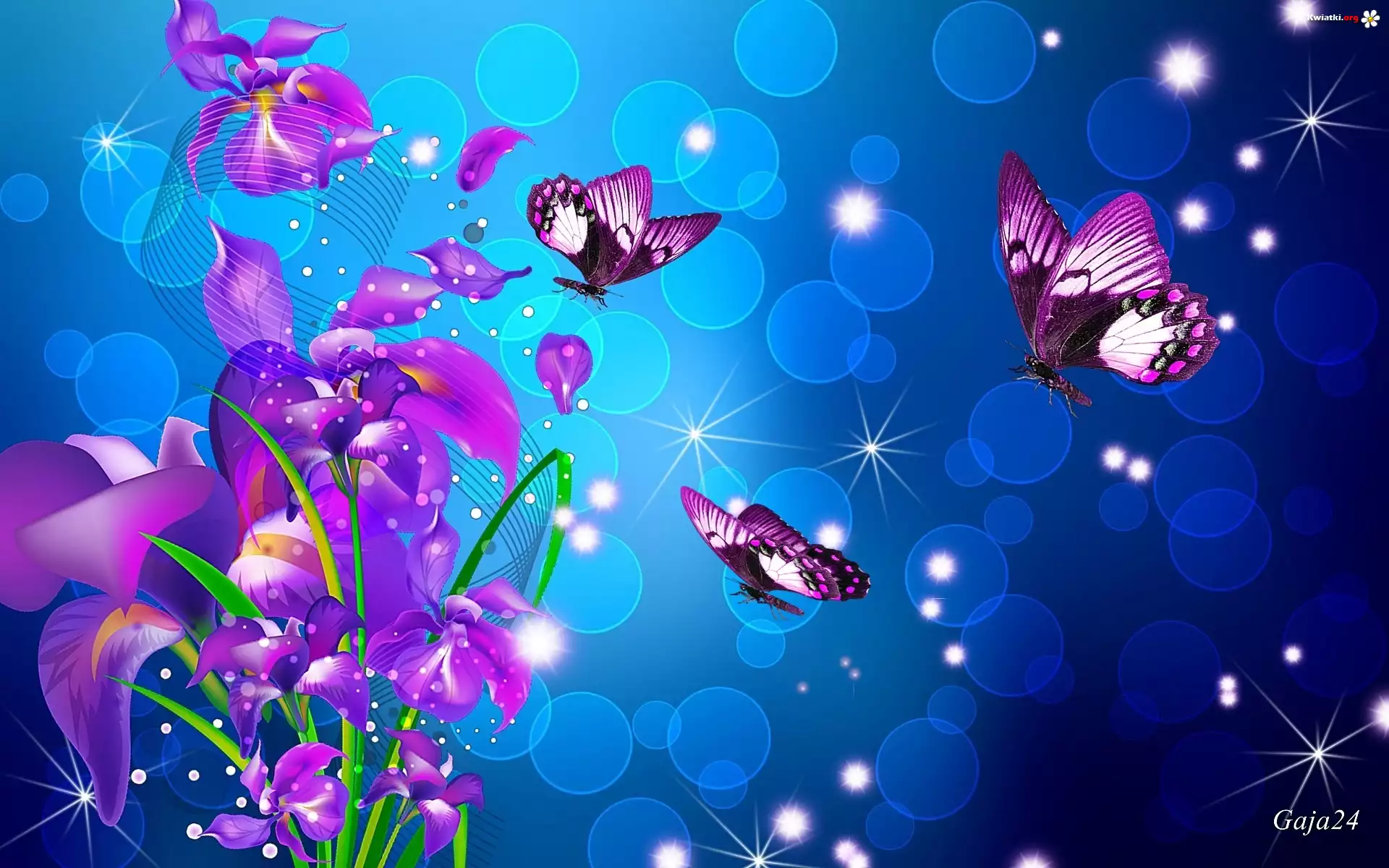 Fioletowe, Kwiaty, Motyle, Art - Zdjęcia