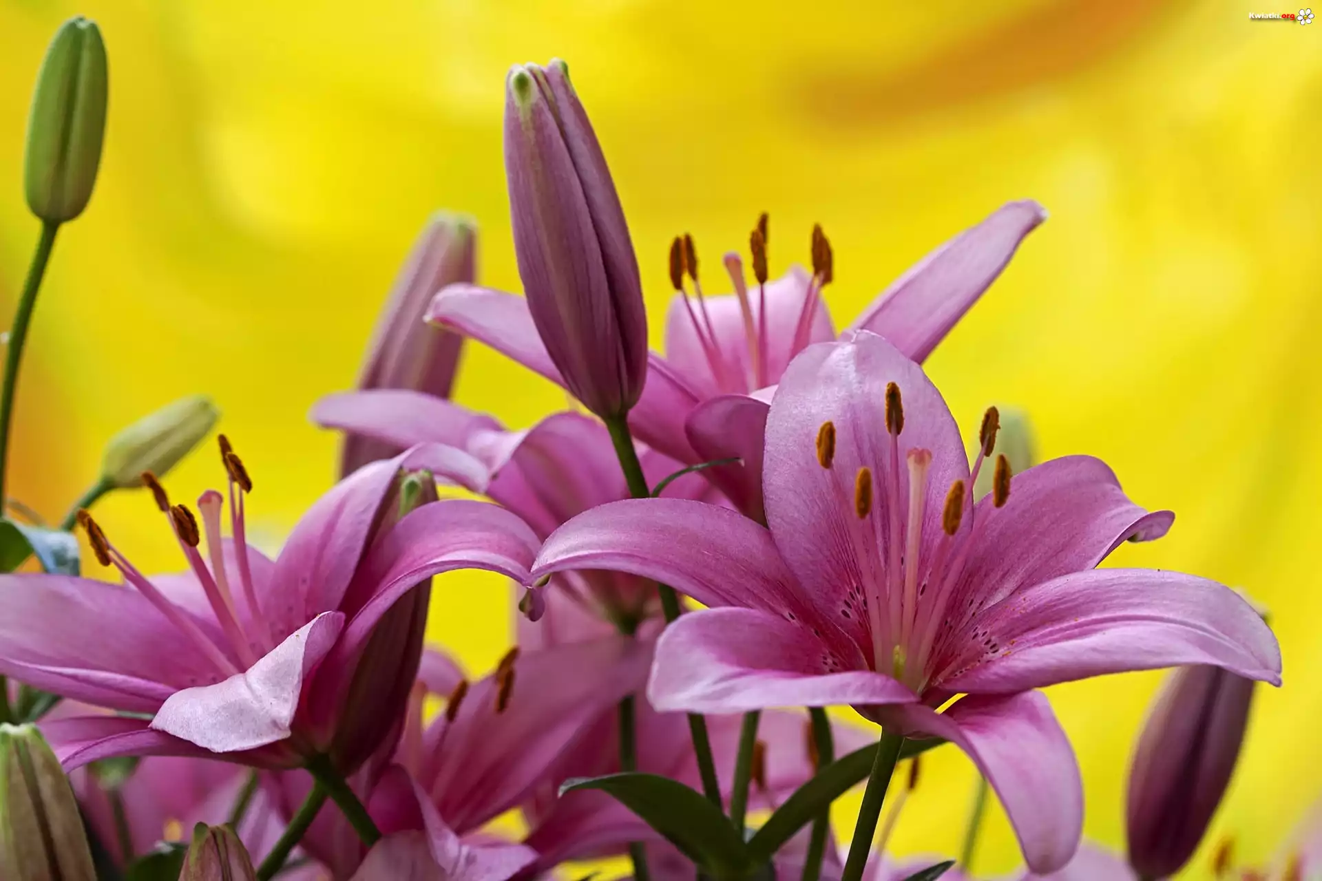 Kwiat Fioletowe, Lilie, Żółte, Tło