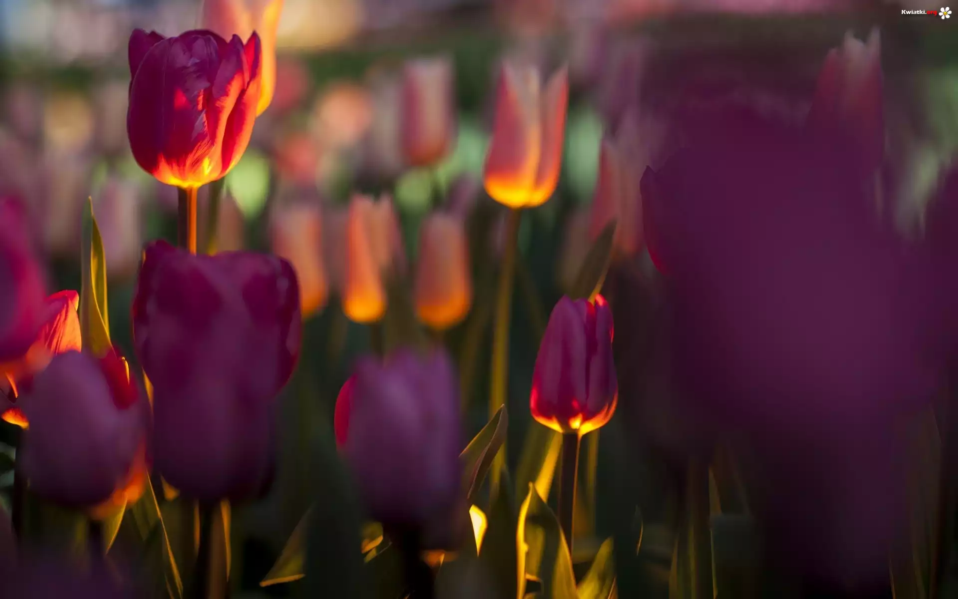 Kwiat Fioletowe, Tulipany, Rozmycie, Blask