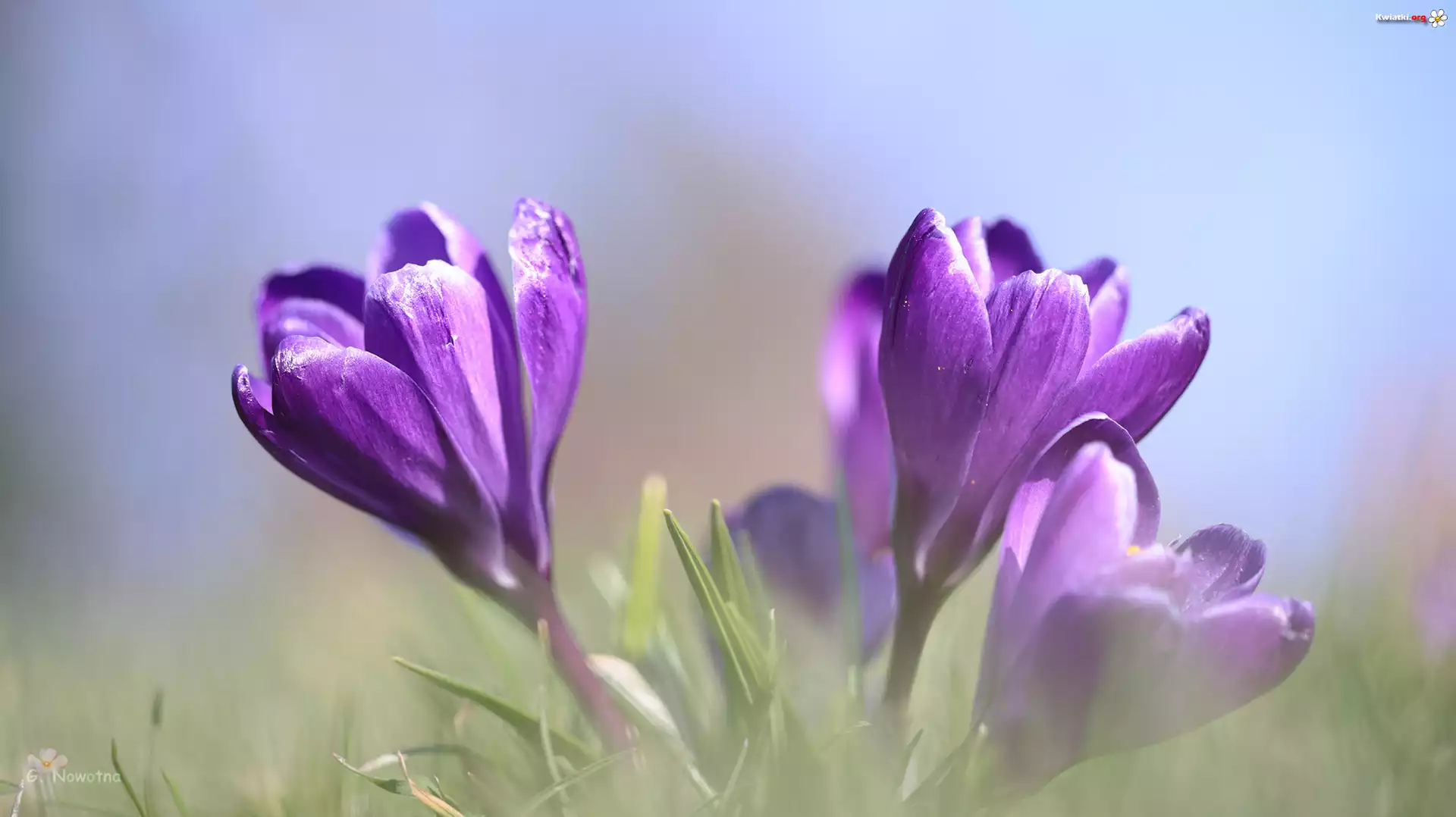 Rozświetlone, Kwiaty, Krokusy, Fioletowe - Zdjęcia