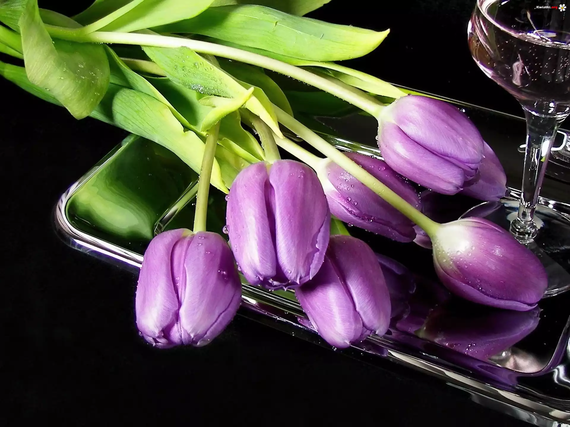 Fioletowe, Tulipany, Srebrna, Taca, Kieliszek - Zdjęcia