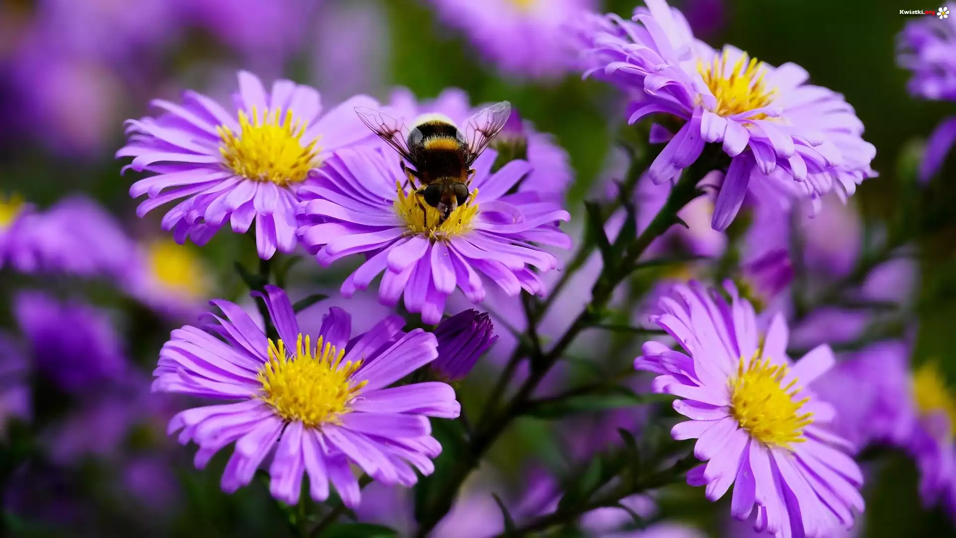 Kwiat Fioletowe, Astry, Trzmiel