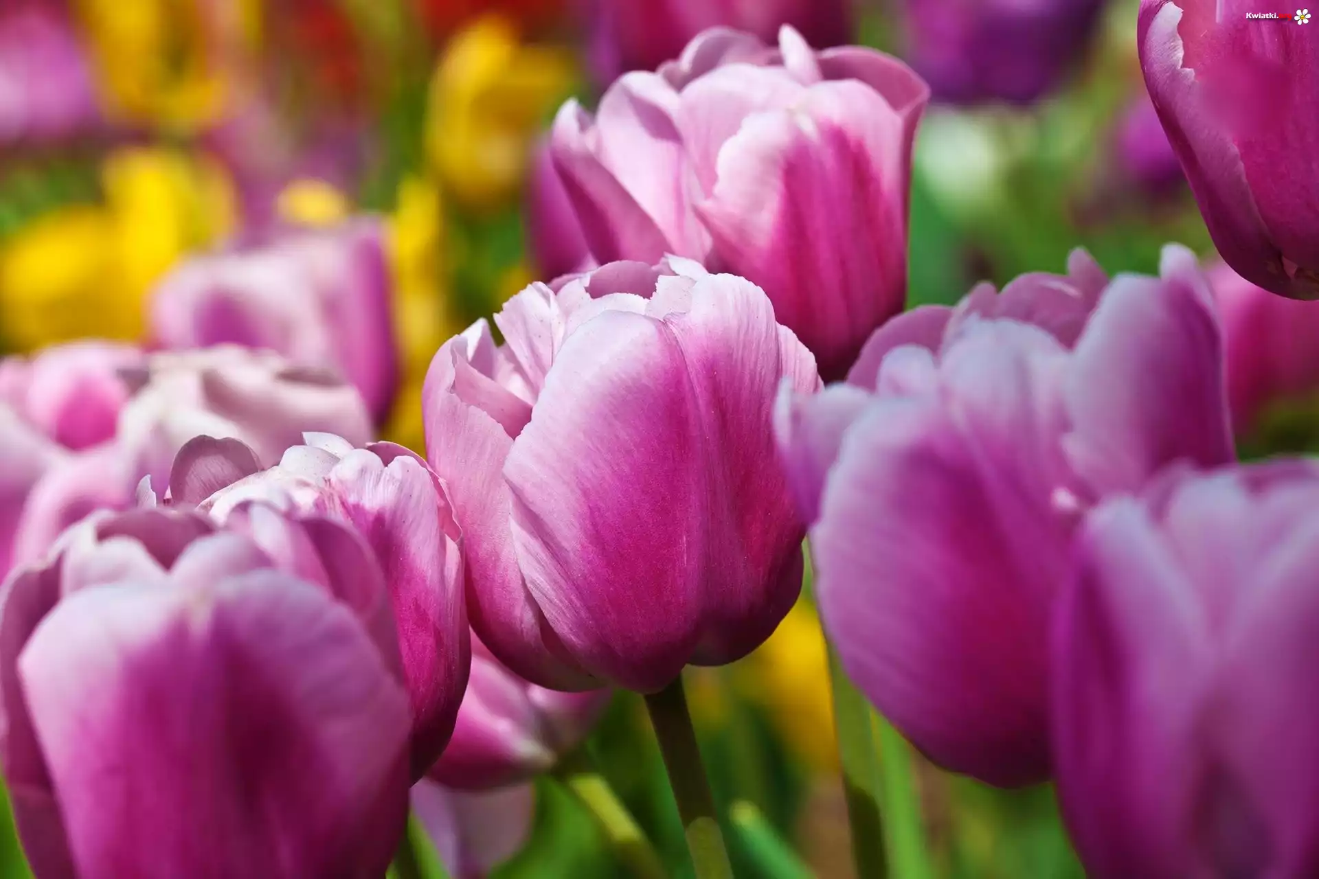 Tulipany, Szklany, Wazon Różowe Tulipany Fioletowe, Tulipany Dwukolorowe, Tulipany Tulipan, żółty, słupek, pręciki Fioletowe, Tulipany Różowe, Rozwinięte, Tulipany Rozkwitnięte, Tulipany Dwa, Czerwonożółte, Tulipany Łąka, Różowe, Tulipany Kolorowe, Tulipany, Łąka, Biały, Płotek Białe, Tulipany Tulipany, Wazon Ogród, Różowych, Tulipanów