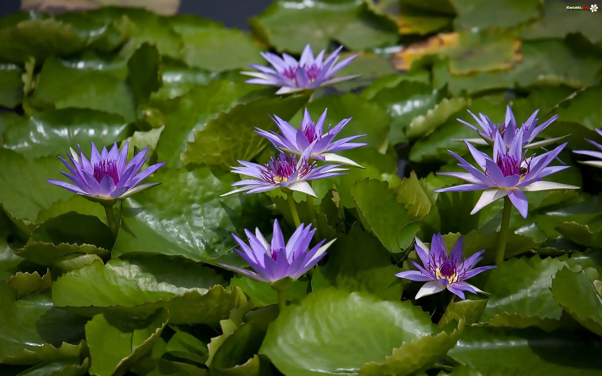 Fioletowe, Lilie wodne, Liście - Zdjęcia