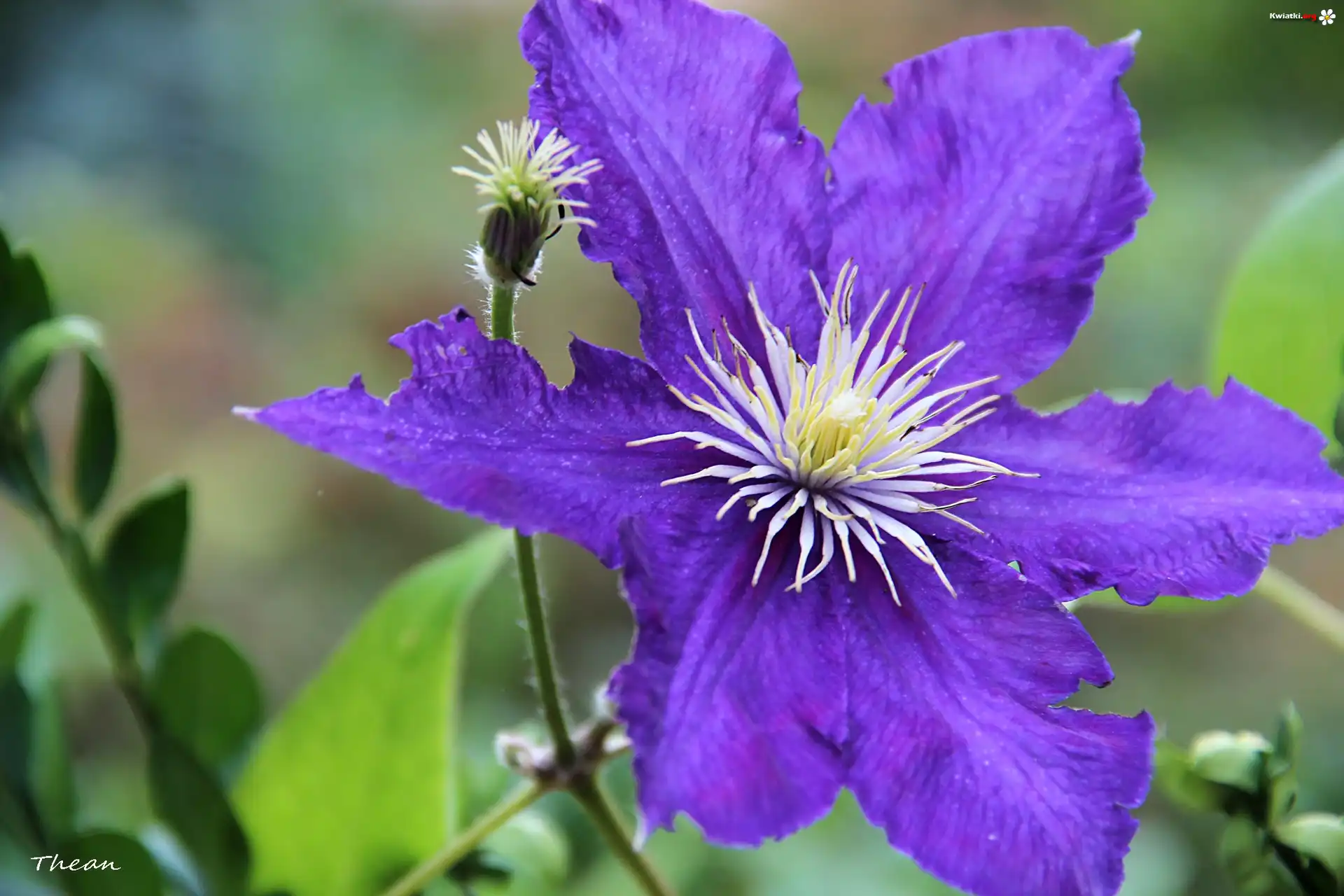 Kwiat Fioletowy, Powojnik, Kwiat, Białe, Pręciki
